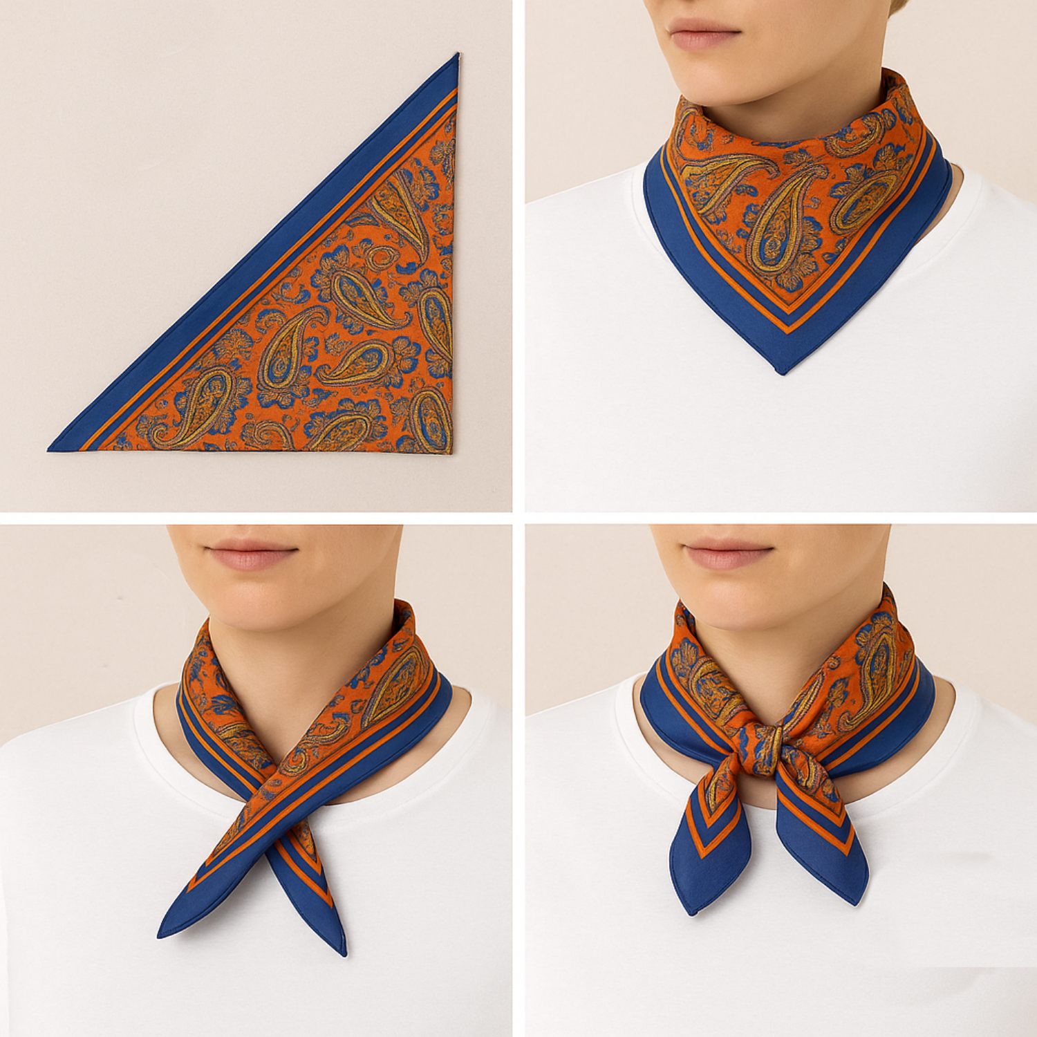 Wskazówka: Pamiętaj, że apaszka to nie tylko dodatek na szyję. Noś ją na głowie, wplecioną w warkocz, a nawet zamiast paska w spodniach.