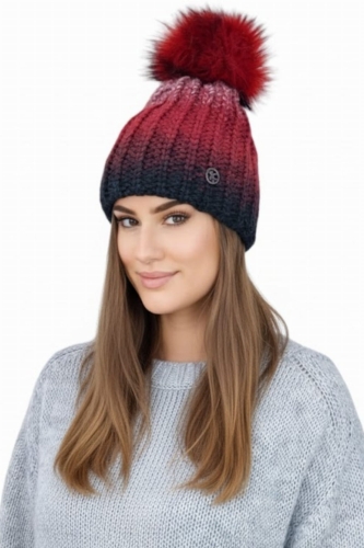 O oryginalności czapki decydują odważne przejścia tonalne, ciekawie zgrywające się w całość. Dodatkowego uroku czapce dodaje piękny, rozłożysty ekologiczny pompon.