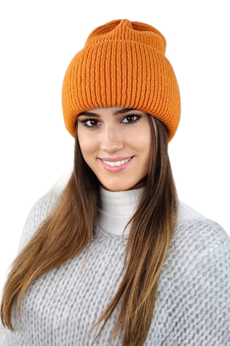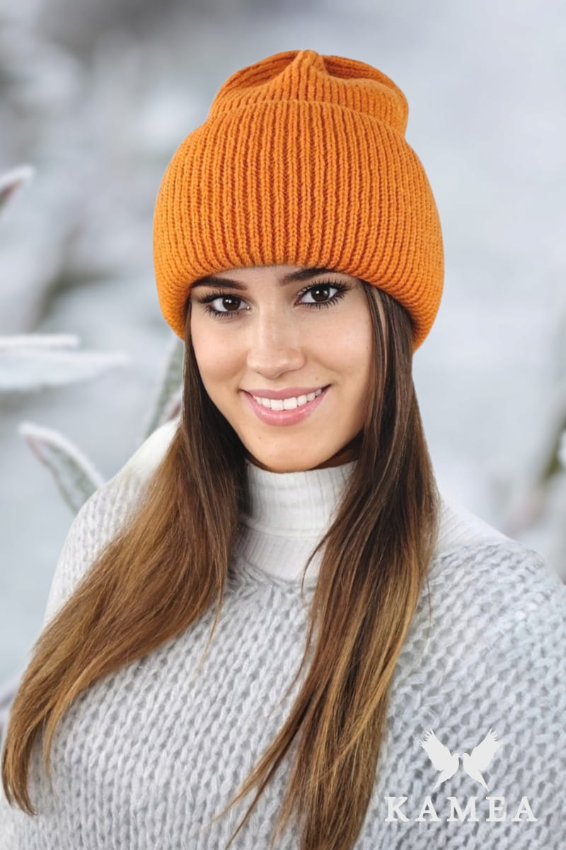 ALMA zimowa puszysta czapka w prążek kolor orange