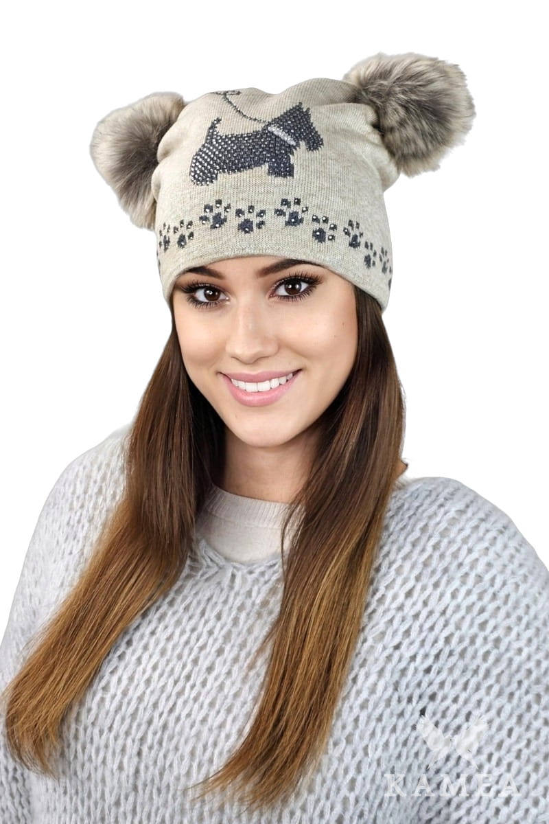 AVRIL czapka damska wełniana zimowa kolor beżowy