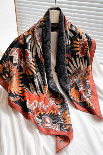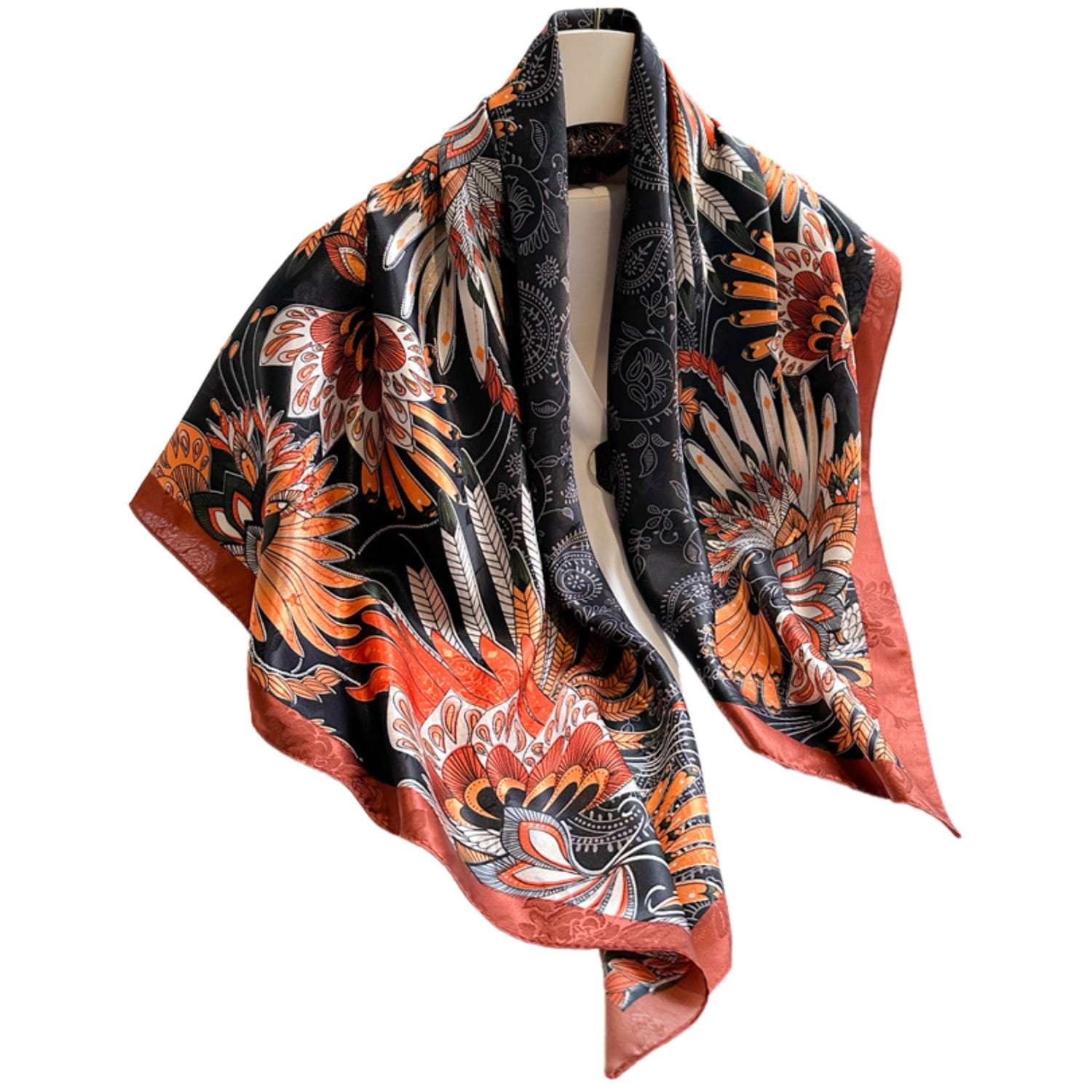 Apaszka 90x90 czarna z orientalnym wzorem – ciepłe barwy jesieni