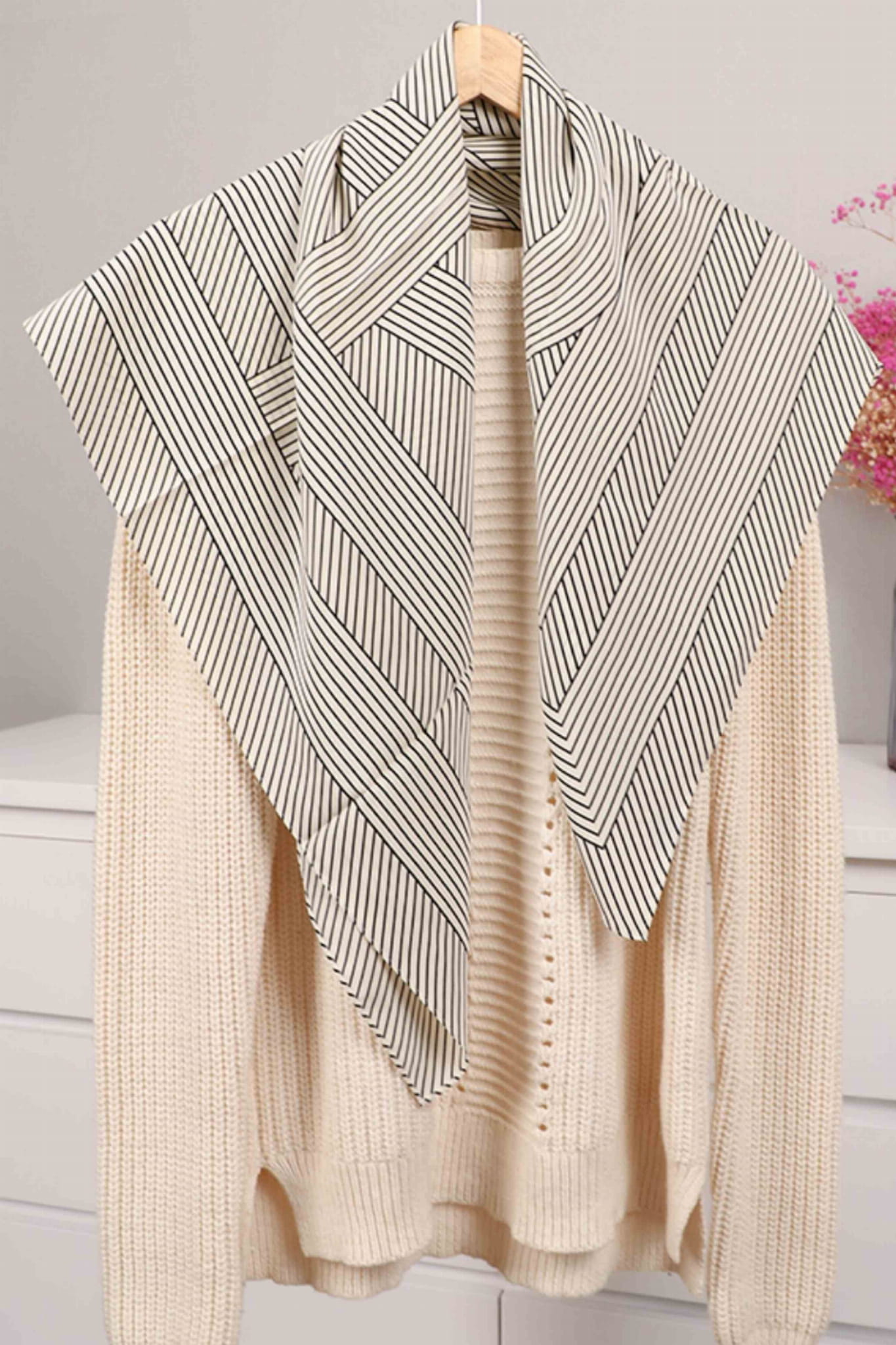 Biało-czarna apaszka z geometrycznym wzorem – graficzna perfekcja