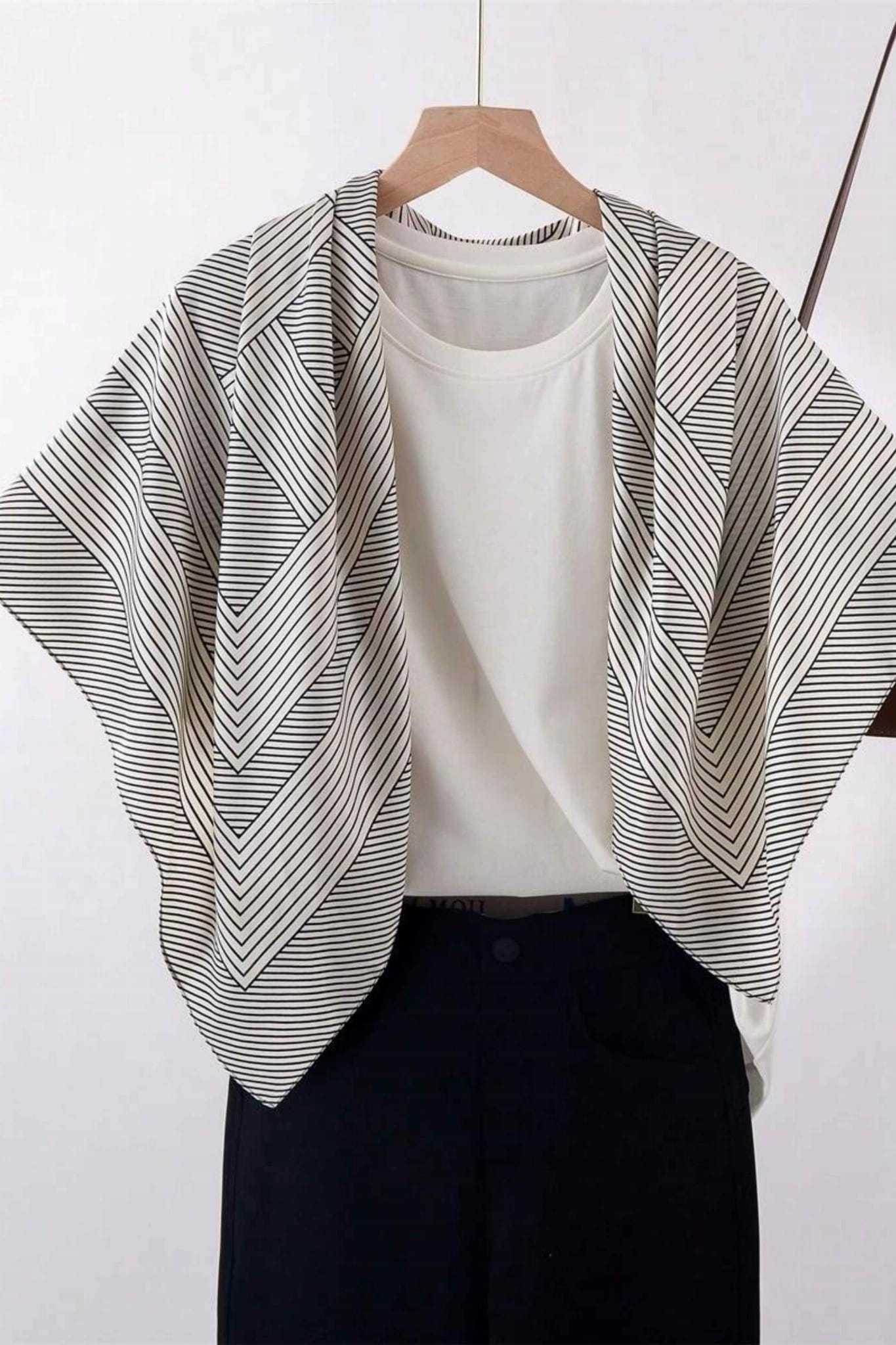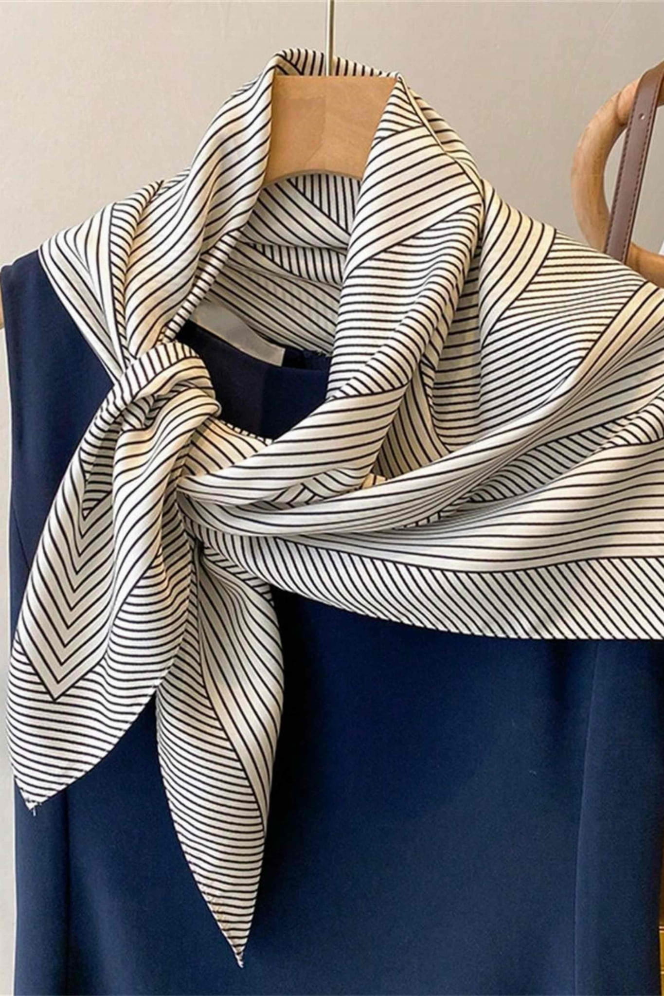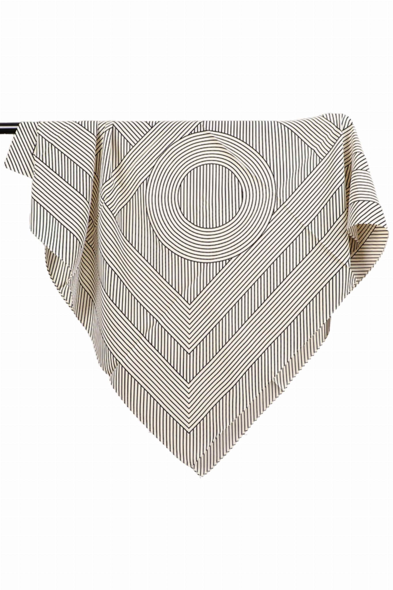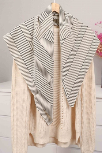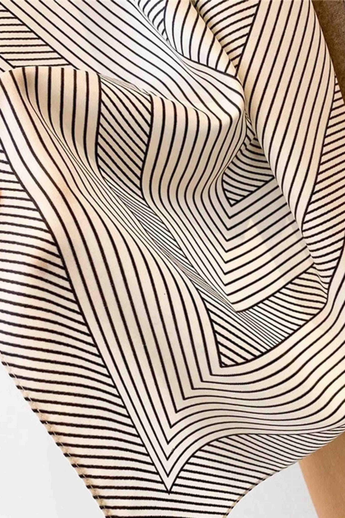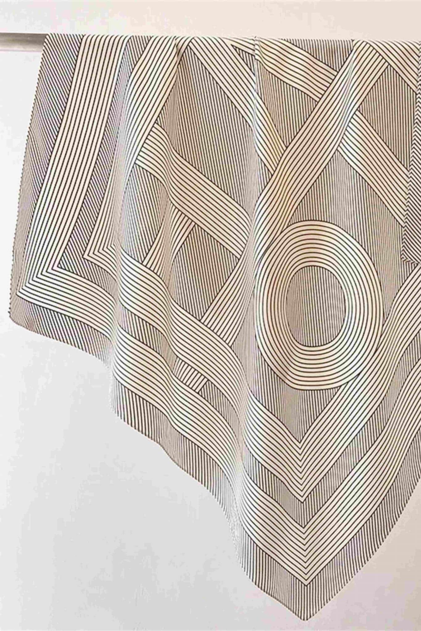 Nowoczesna, a zarazem ponadczasowa – ta biało-czarna apaszka z przyciągającym wzrok motywem linii i koncentrycznych okręgów to propozycja dla kobiet ceniących minimalizm i graficzną precyzję.