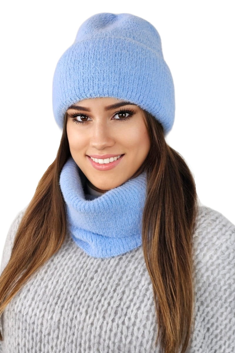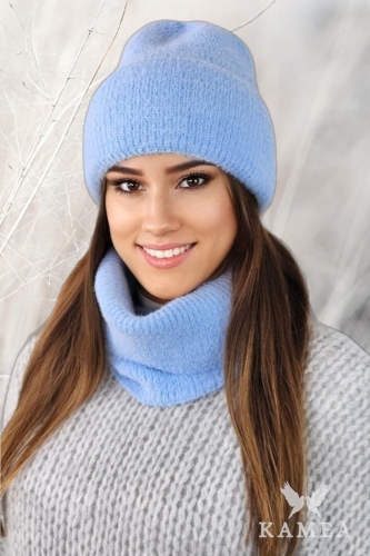 BENITA komplet alpaka czapka z kominem kolor błękitny