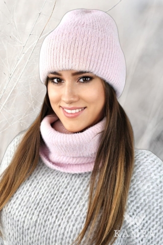 BENITA komplet alpaka czapka z kominem kolor różowy
