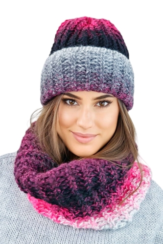 BLUES zimowy cieniowany komplet czapka z kominem kolor malinowy