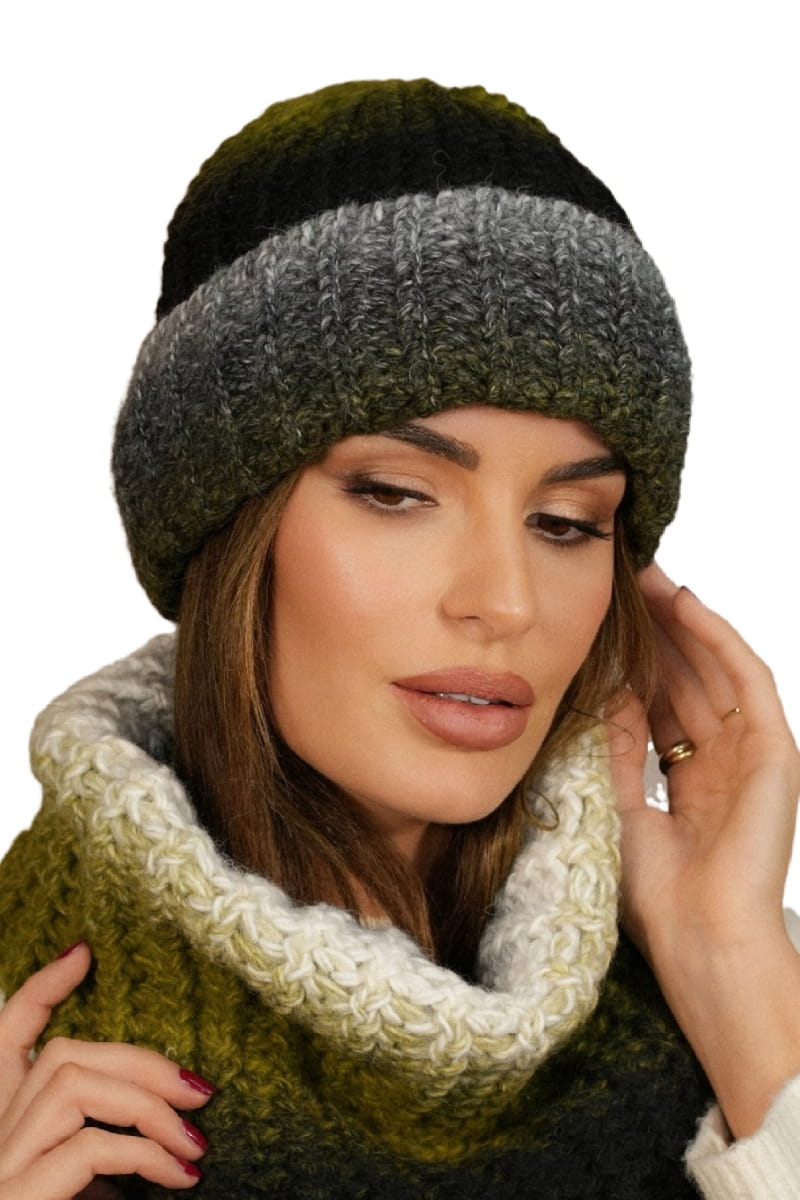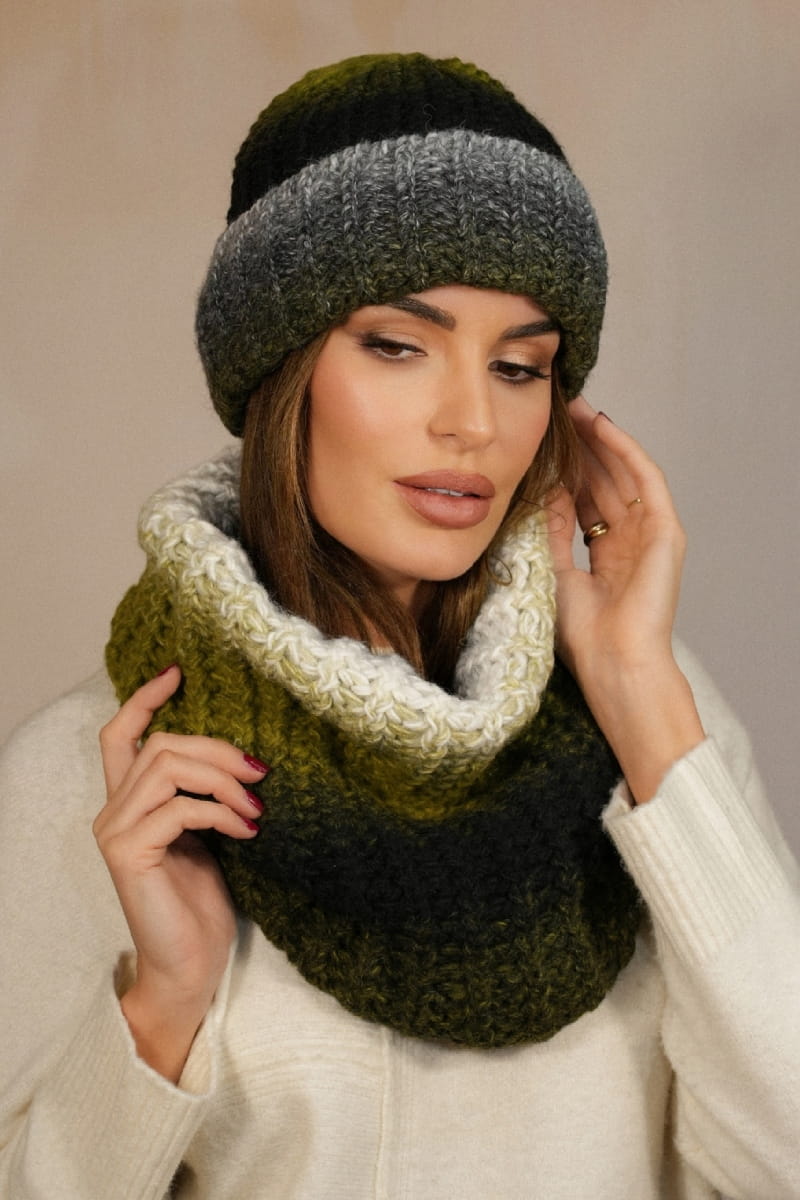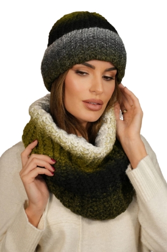 BLUES zimowy cieniowany komplet czapka z kominem kolor oliwkowy