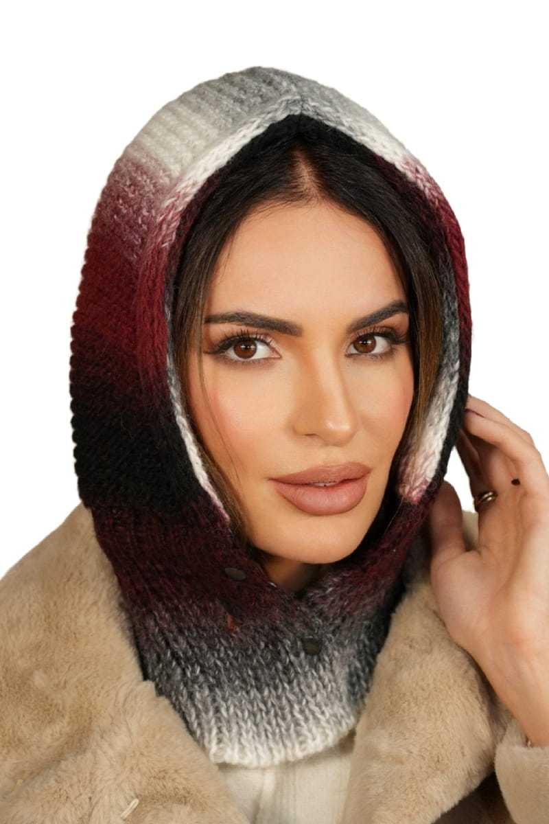 Balaclava Kaptur Kominiarka Zapinany Na Napy Kolor Bordowy Kamea-Virginia
