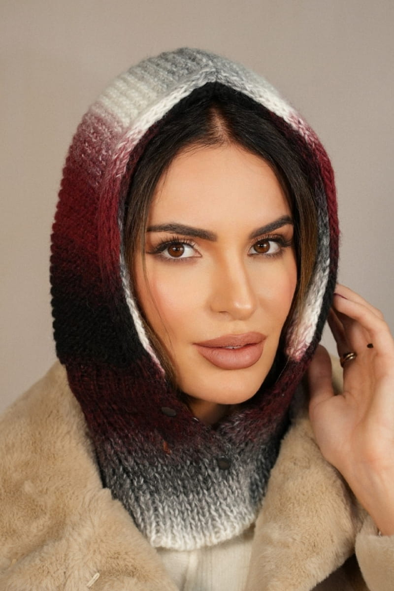 Wykonany z cieniowanej przędzy, każdy egzemplarz kaptura ma niepowtarzalną kolorystykę, co sprawia, że nosząc go, masz pewność, że Twój model jest absolutnie unikalny. Subtelne przejścia barw w kapturze „Virginia” sprawiają, że jego kolorystyka zmienia się w zależności od światła i kąta, podkreślając indywidualność i nietuzinkowy charakter każdej stylizacji.