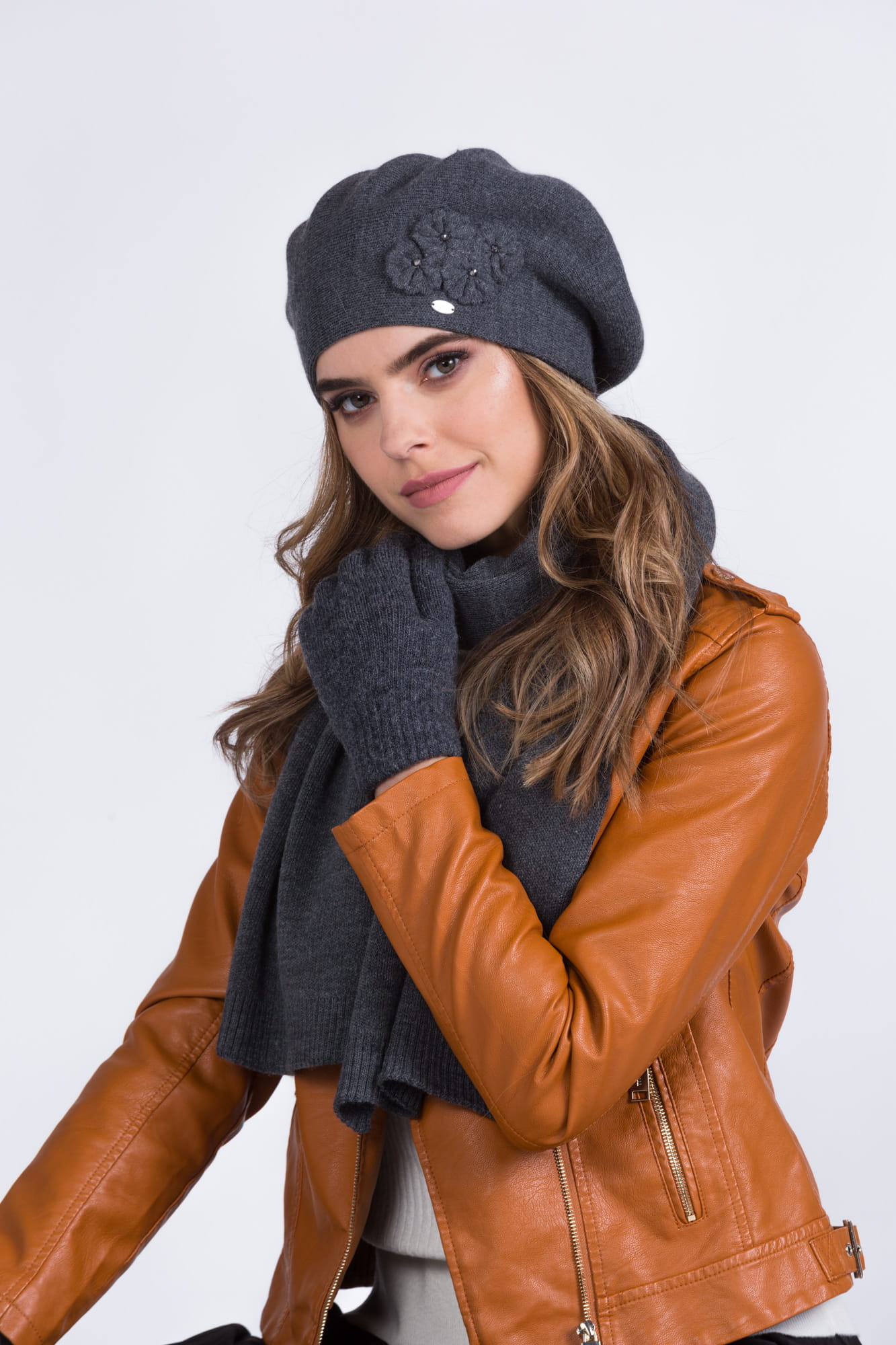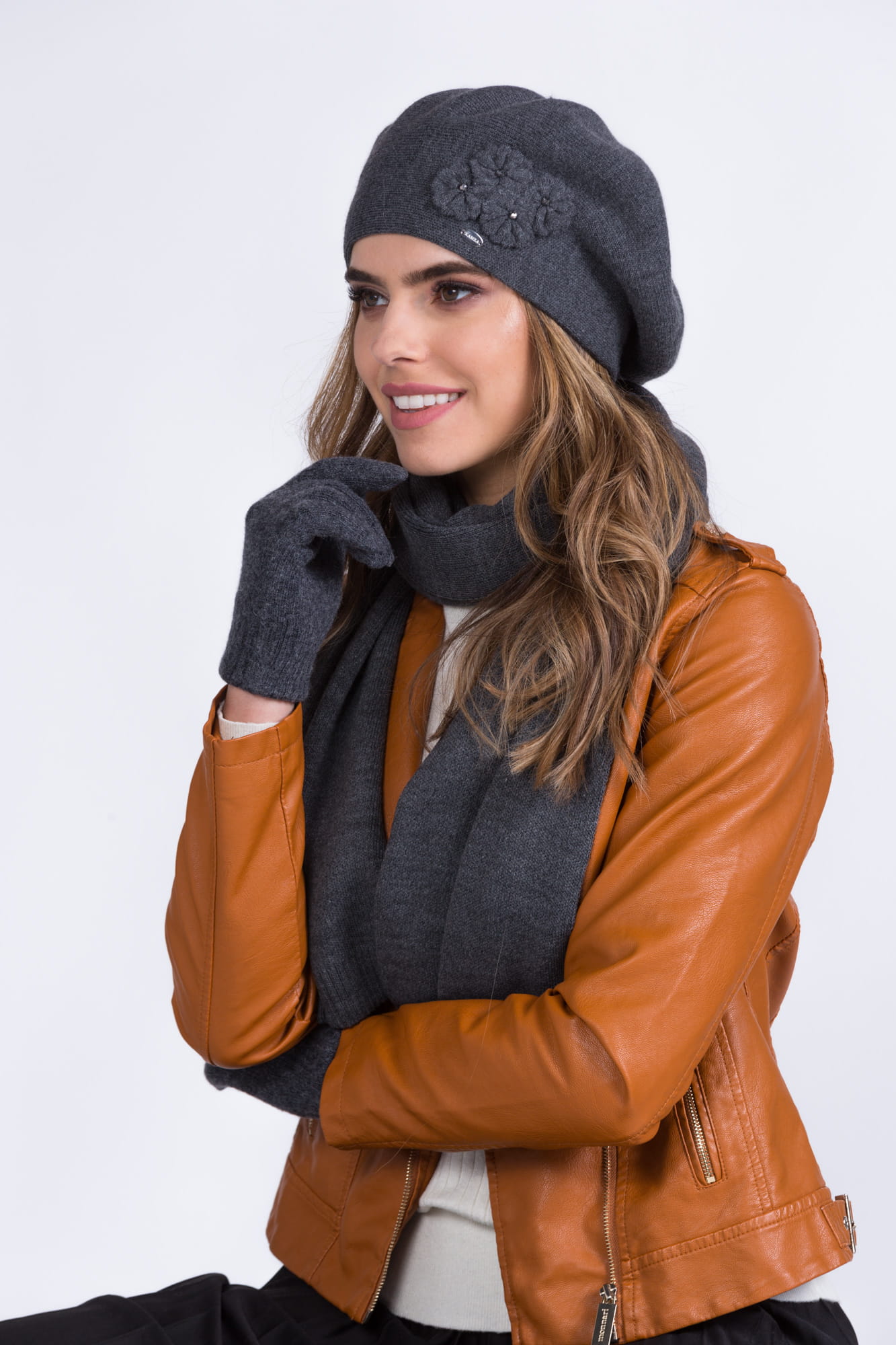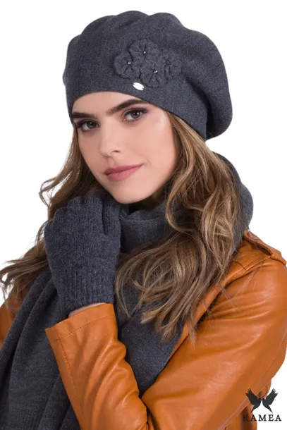Beret damski Chanti – grafitowy, elegancki na jesień i zimę