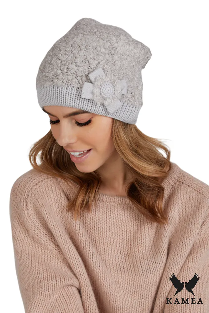 CZAPKA DAMSKA - jakościowa przędza - zimowa kolor jasnoszara - MYA