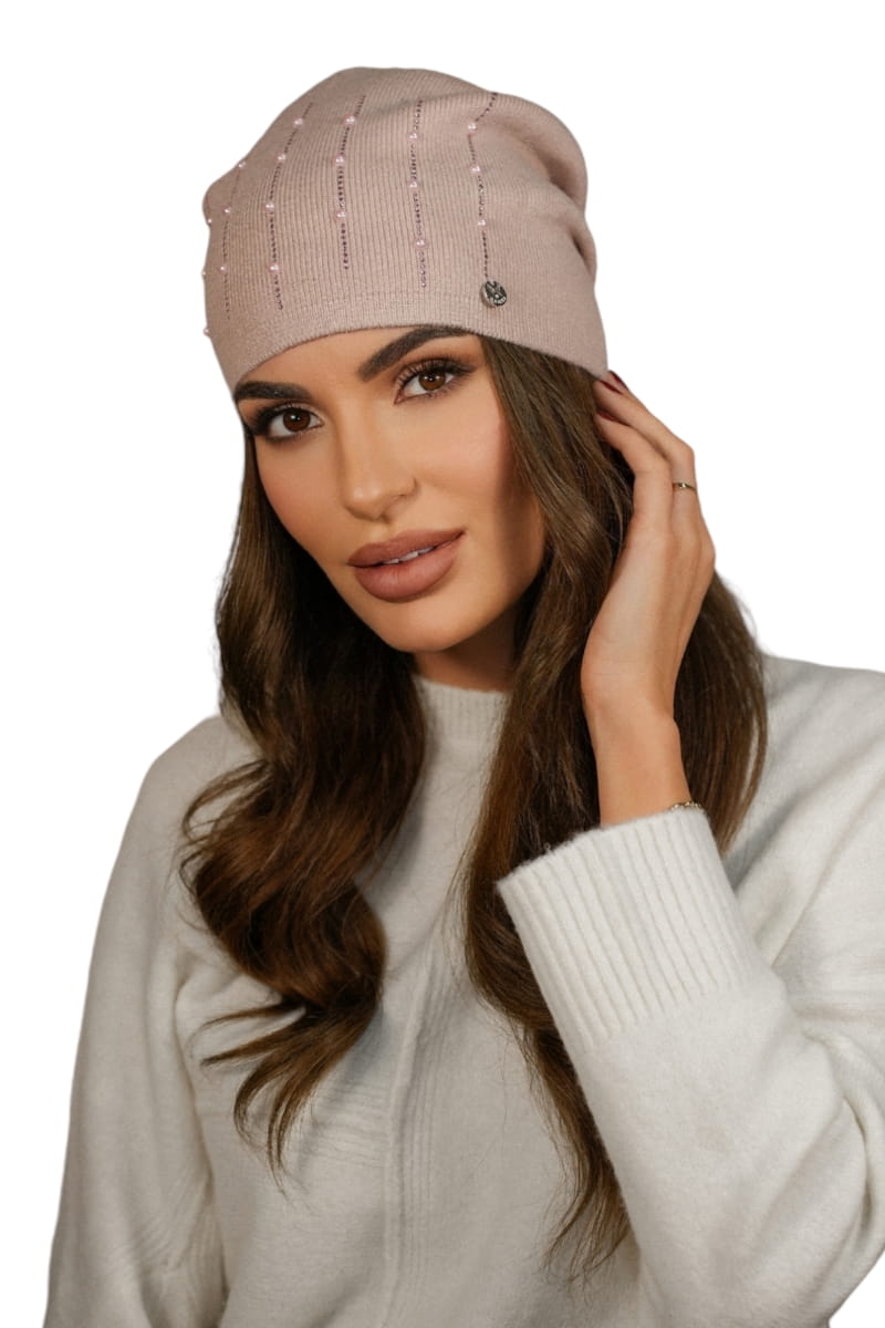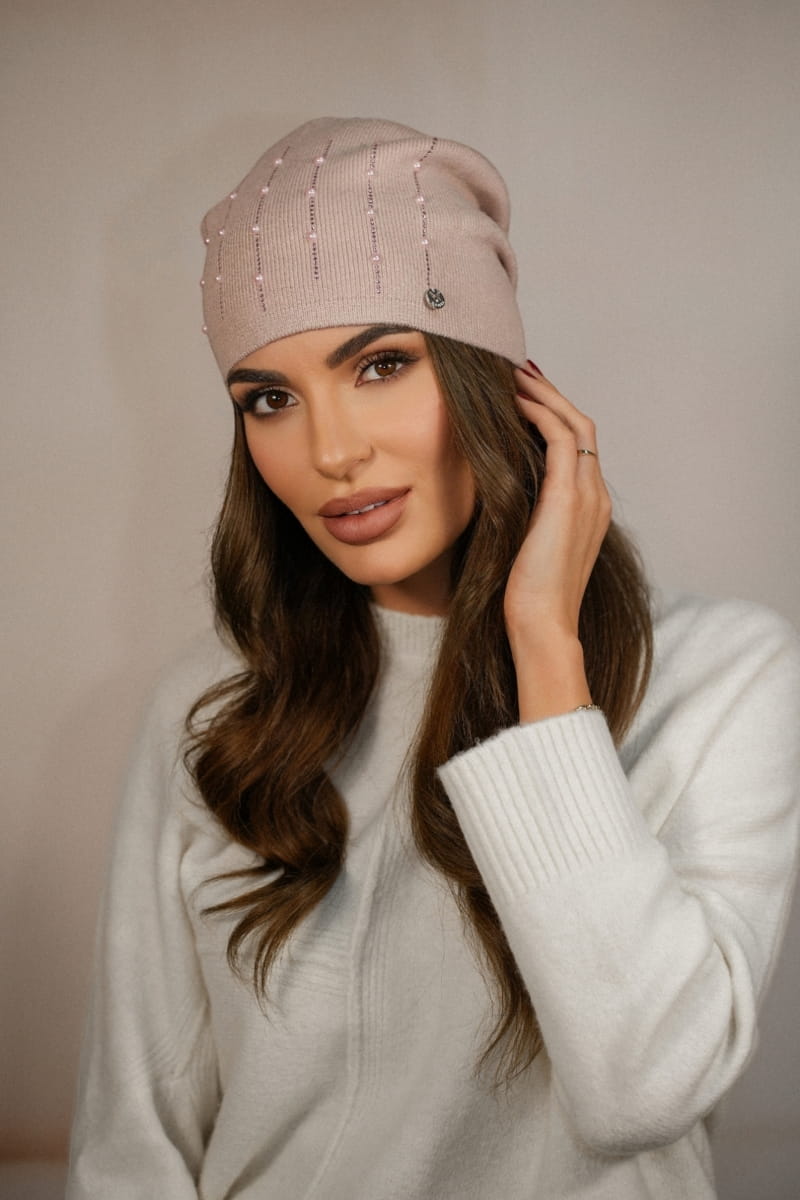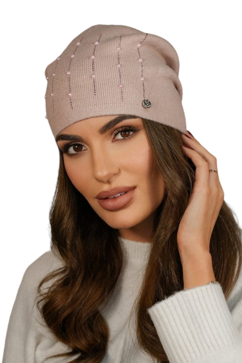 Czapka Damska Z Ozdobą Z Perełek Kolor Różowy Kamea - Altair