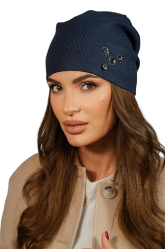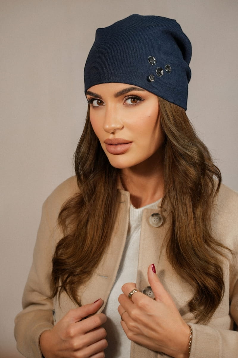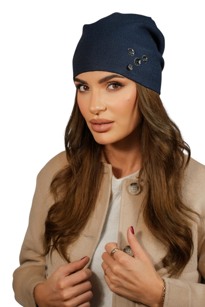 Czapka Damska Z Ozobą Z Cyrkonii Jesienno-Zimowa Kolor Granatowy Kamea-Marcus