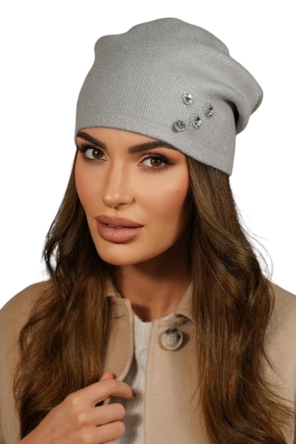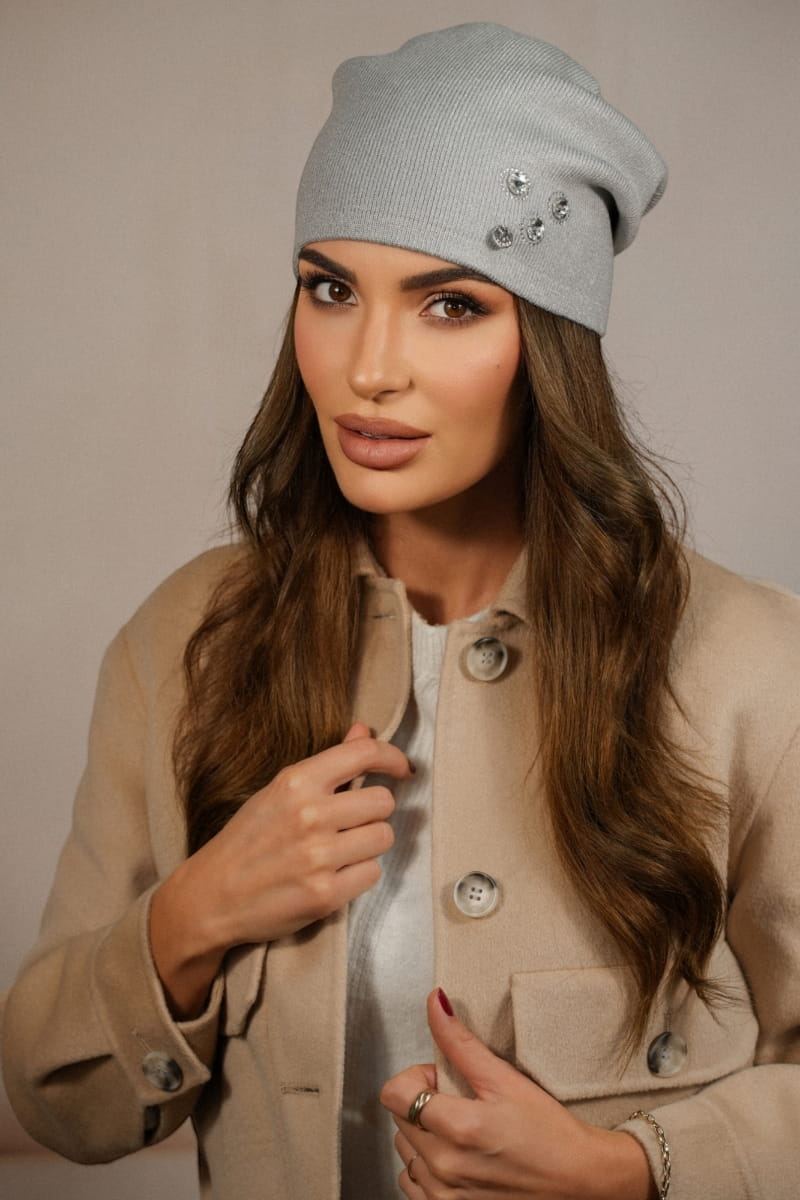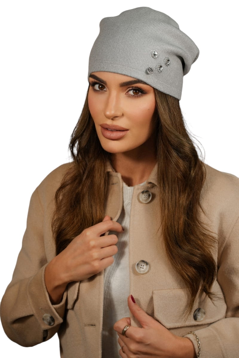 Czapka Damska Z Ozobą Z Cyrkonii Jesienno-Zimowa Kolor Szary Kamea-Marcus