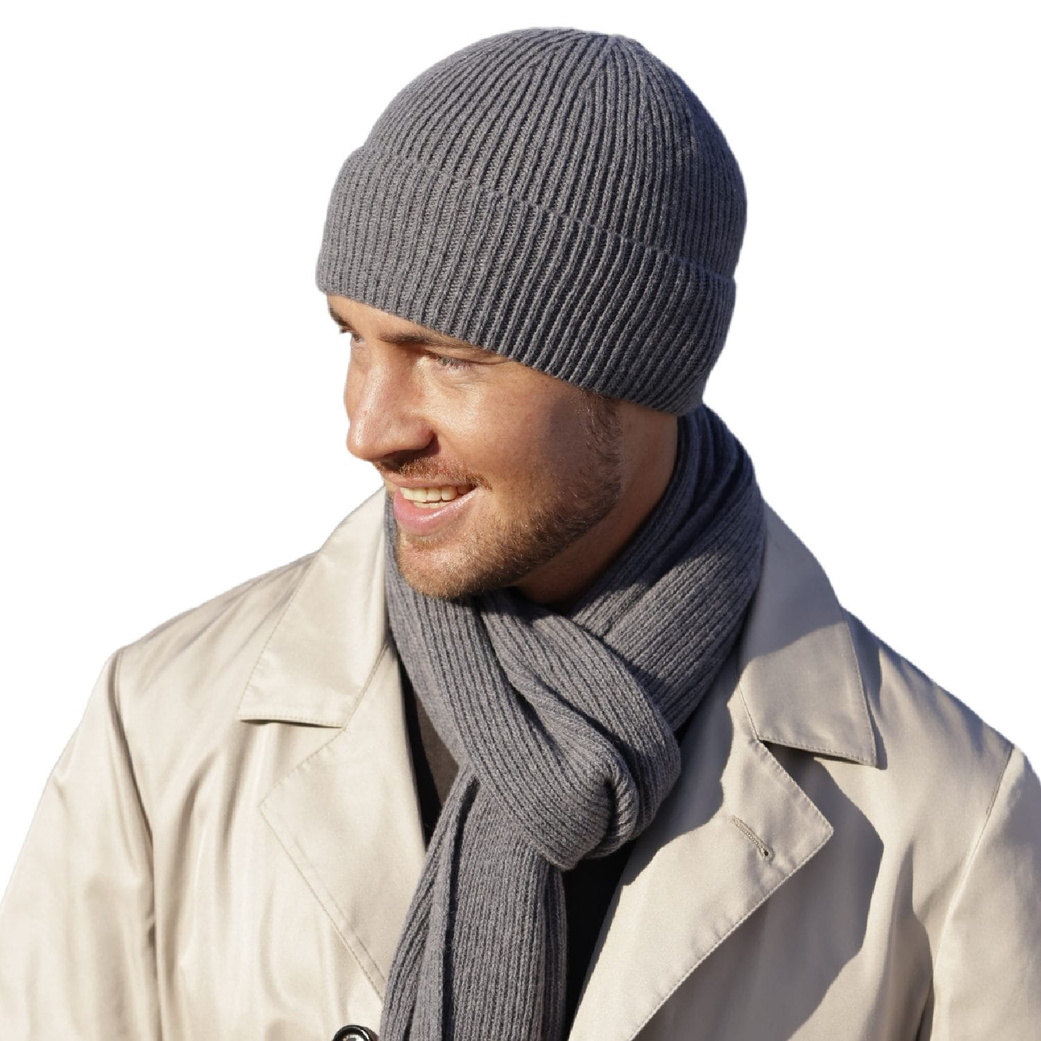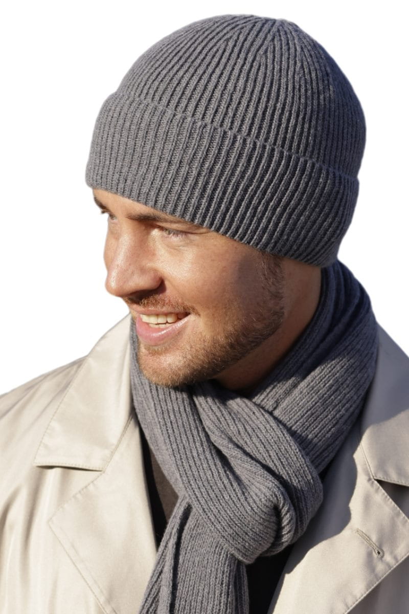 KAMEA Liam: wełniana czapka męska w graficie. 80% wełna, Podwójnie dziany, prążkowany mankiet , rozmiar 54–62. Polska produkcja.