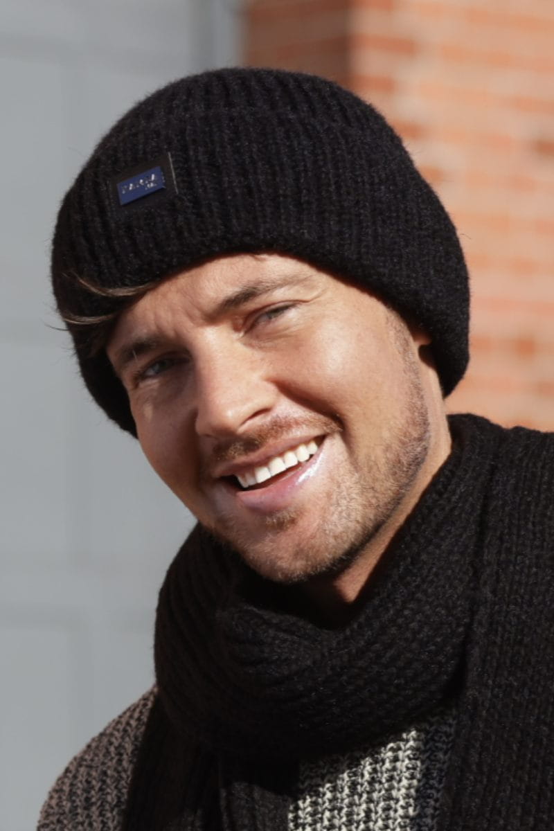 Klasyczna czarna czapka dla mężczyzn. Miękka dzianina o wyrazistym ściągaczu i podwiniętym mankiecie dobrze trzyma ciepło, nie uciska i szybko schnie. Bez podszewki – lepsza oddychalność. Wyprodukowano w Polsce.