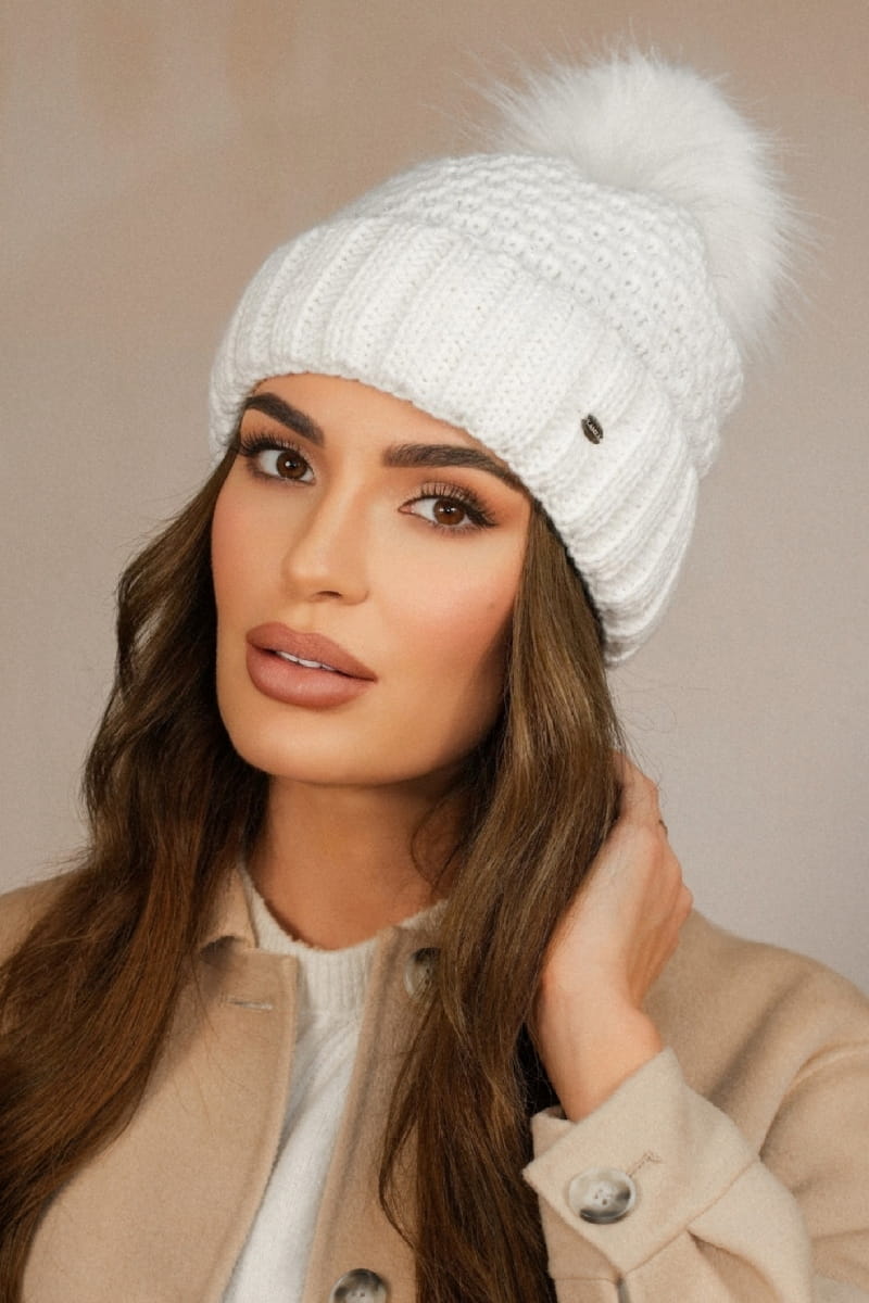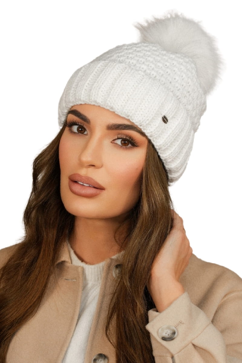 Czapka Ocieplana Polarem Kolor Biały Kamea-Furja Z Eco Pomponem
