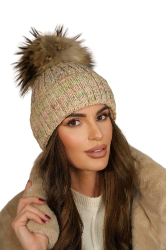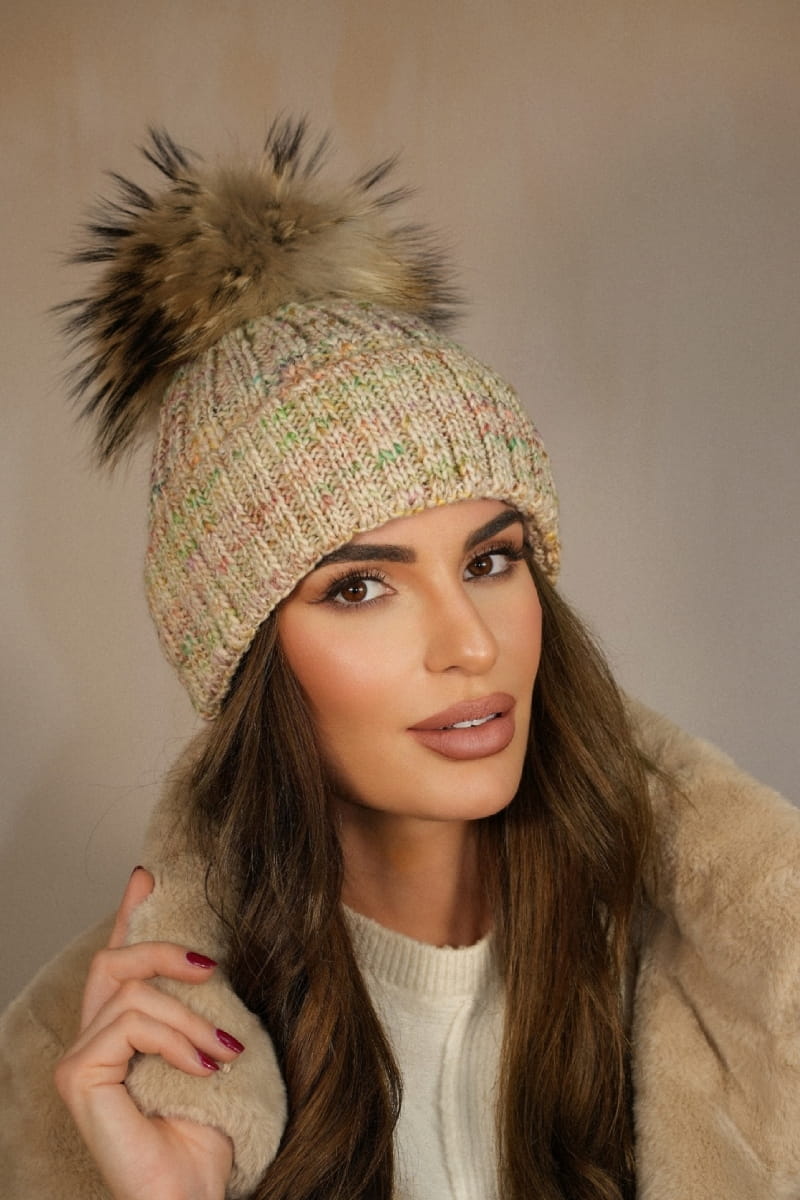 Czapka Wielokolorowa Kolor Beżowy Kamea-Pavone Z Naturalnym Pomponem Z Yenota