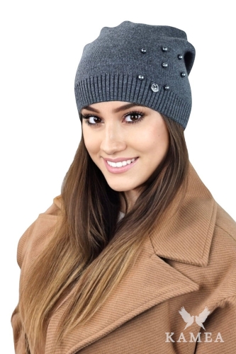KALCYT – grafitowa czapka zimowa damska z subtelnym połyskiem