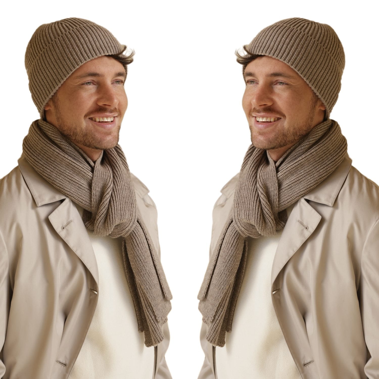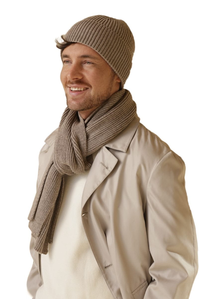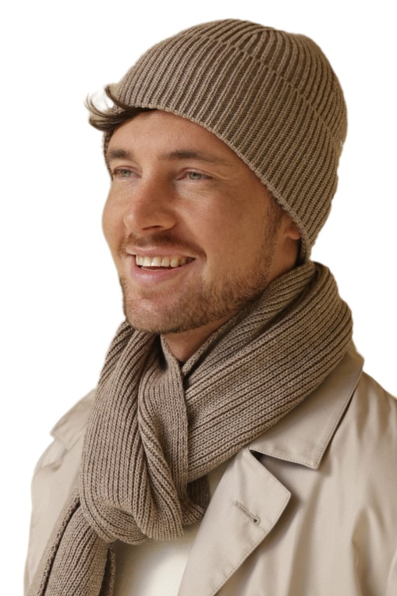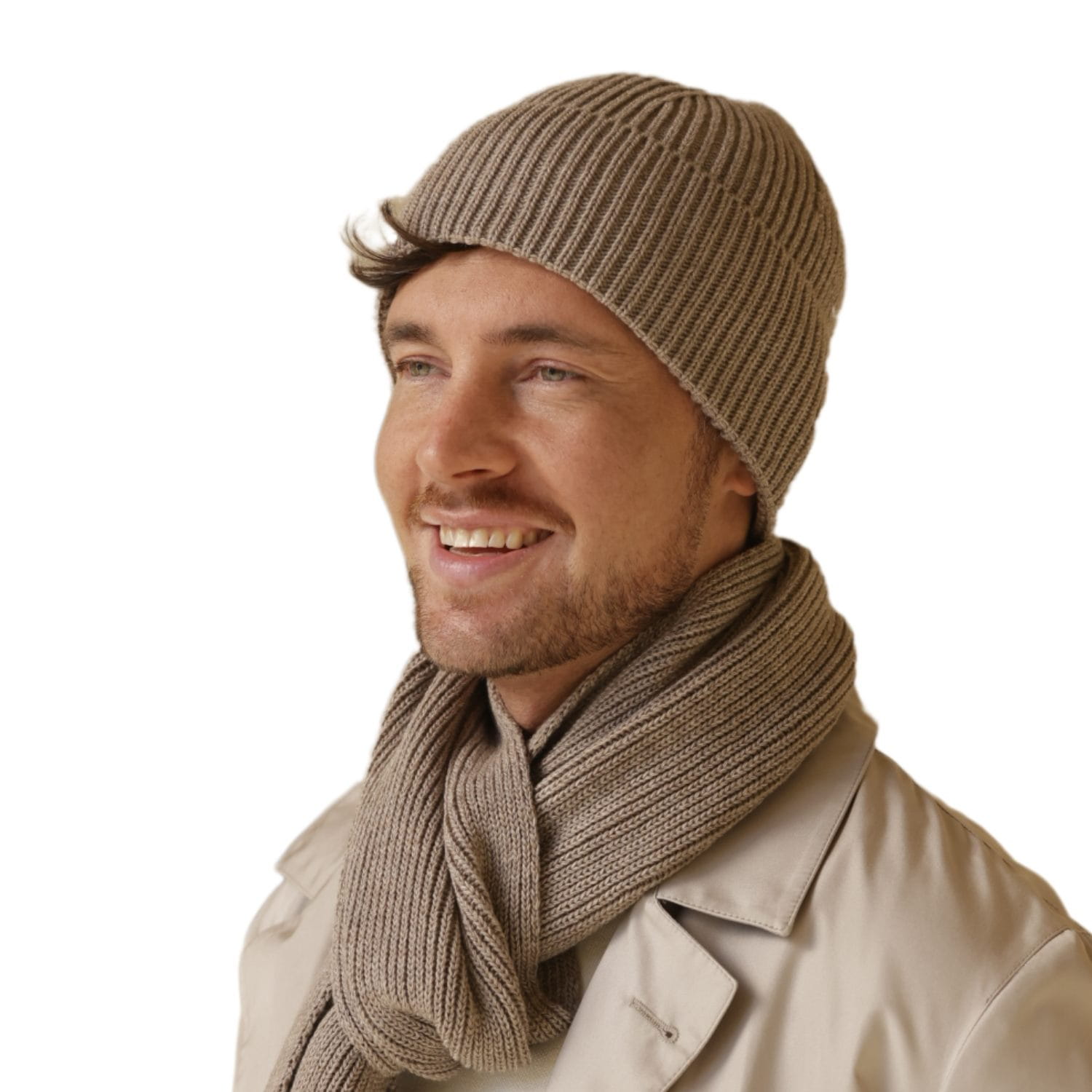 Czapka męska Filip – ciemny beż, prążek z mankietem | KAMEA