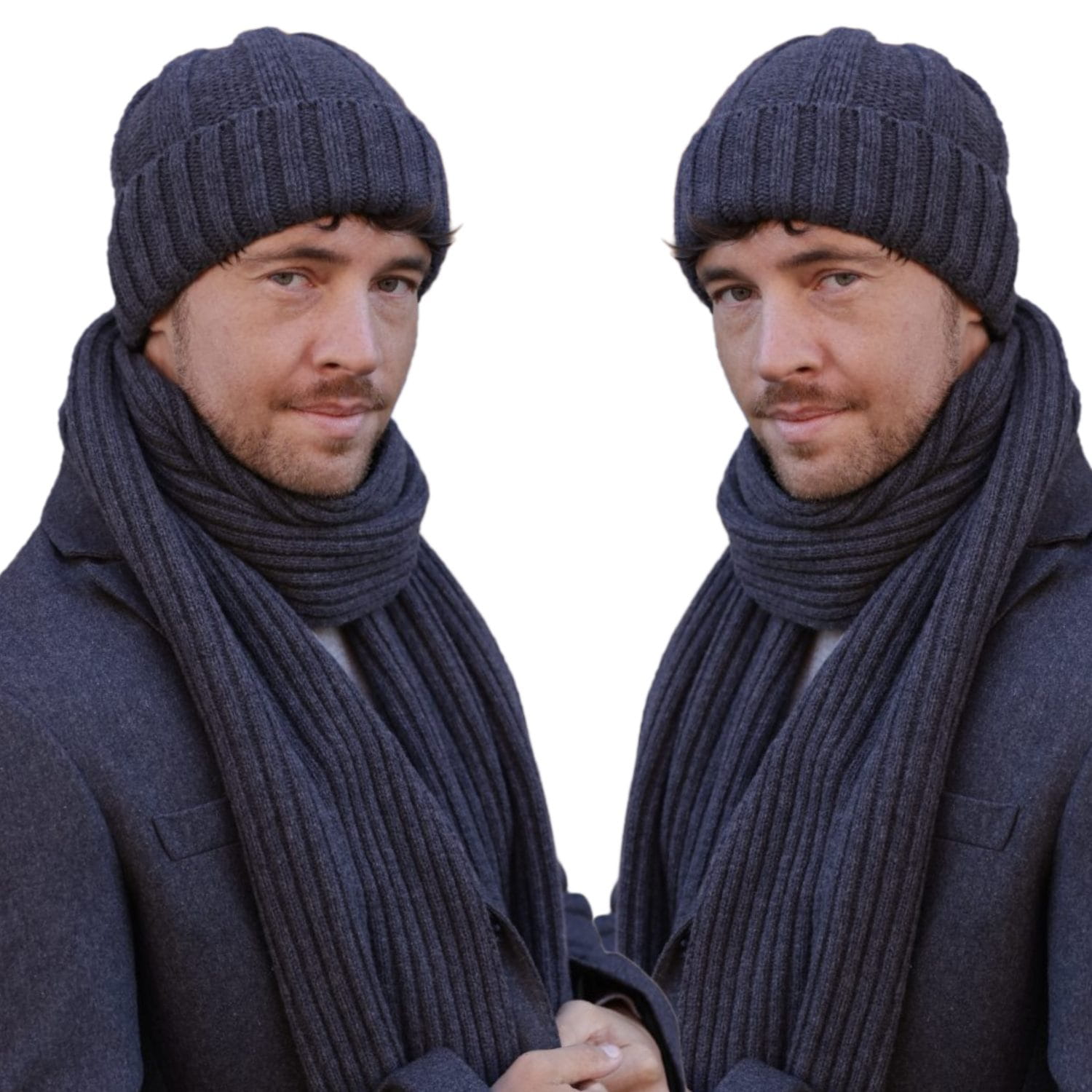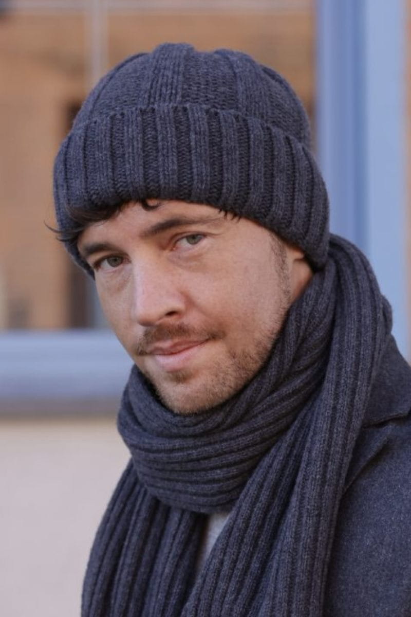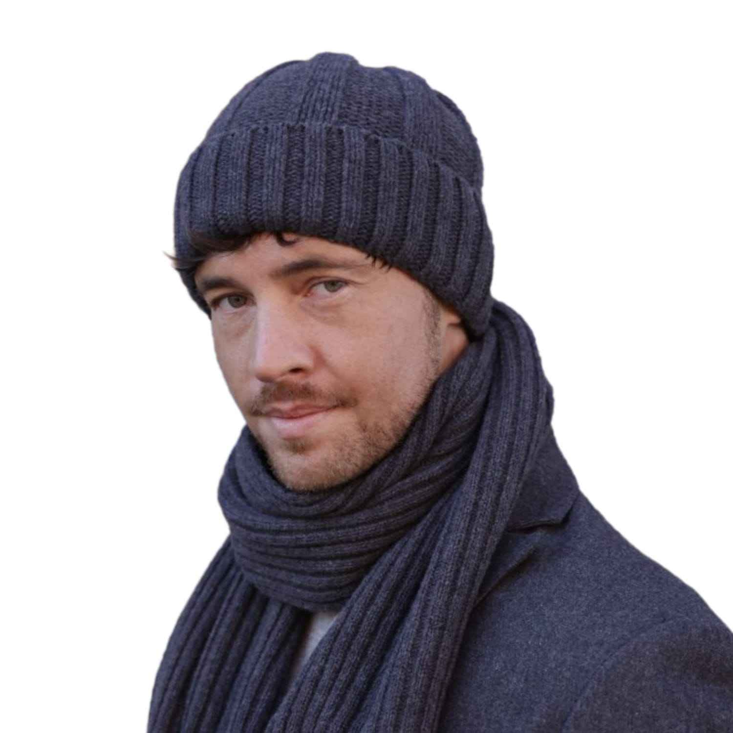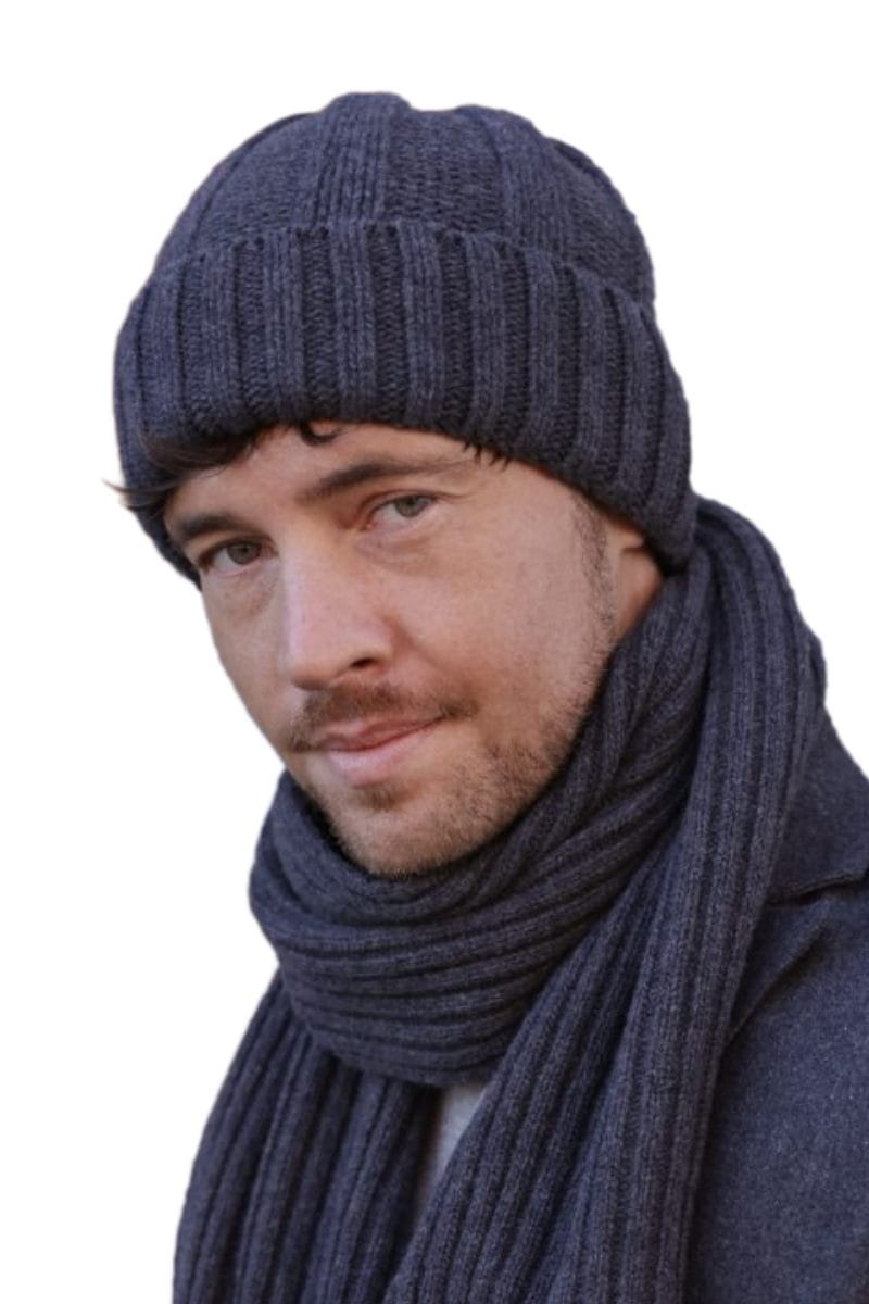 Czapka męska BEN – grafit, wełna 80%, prążek | KAMEA