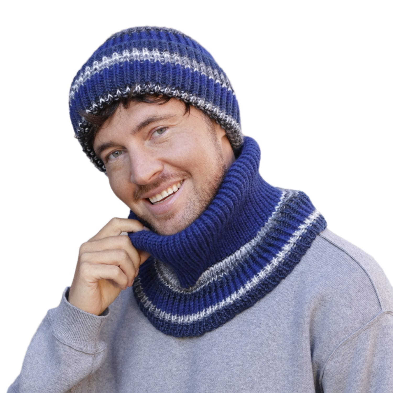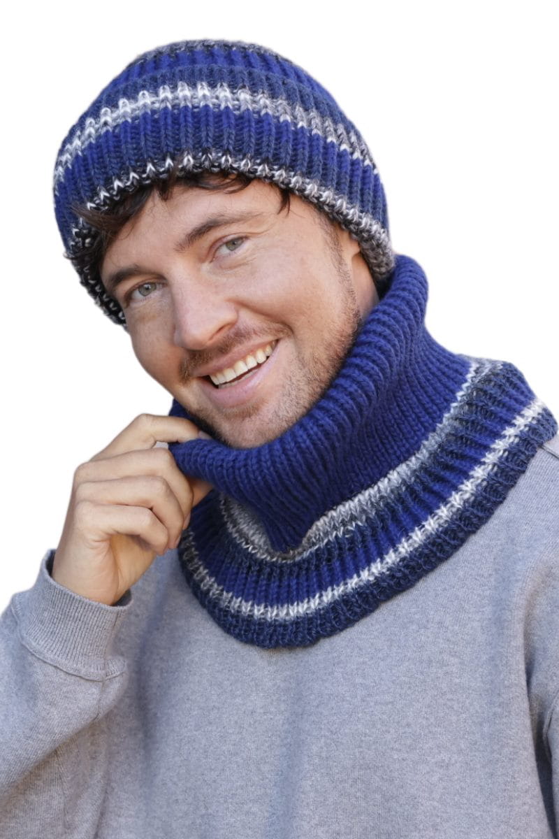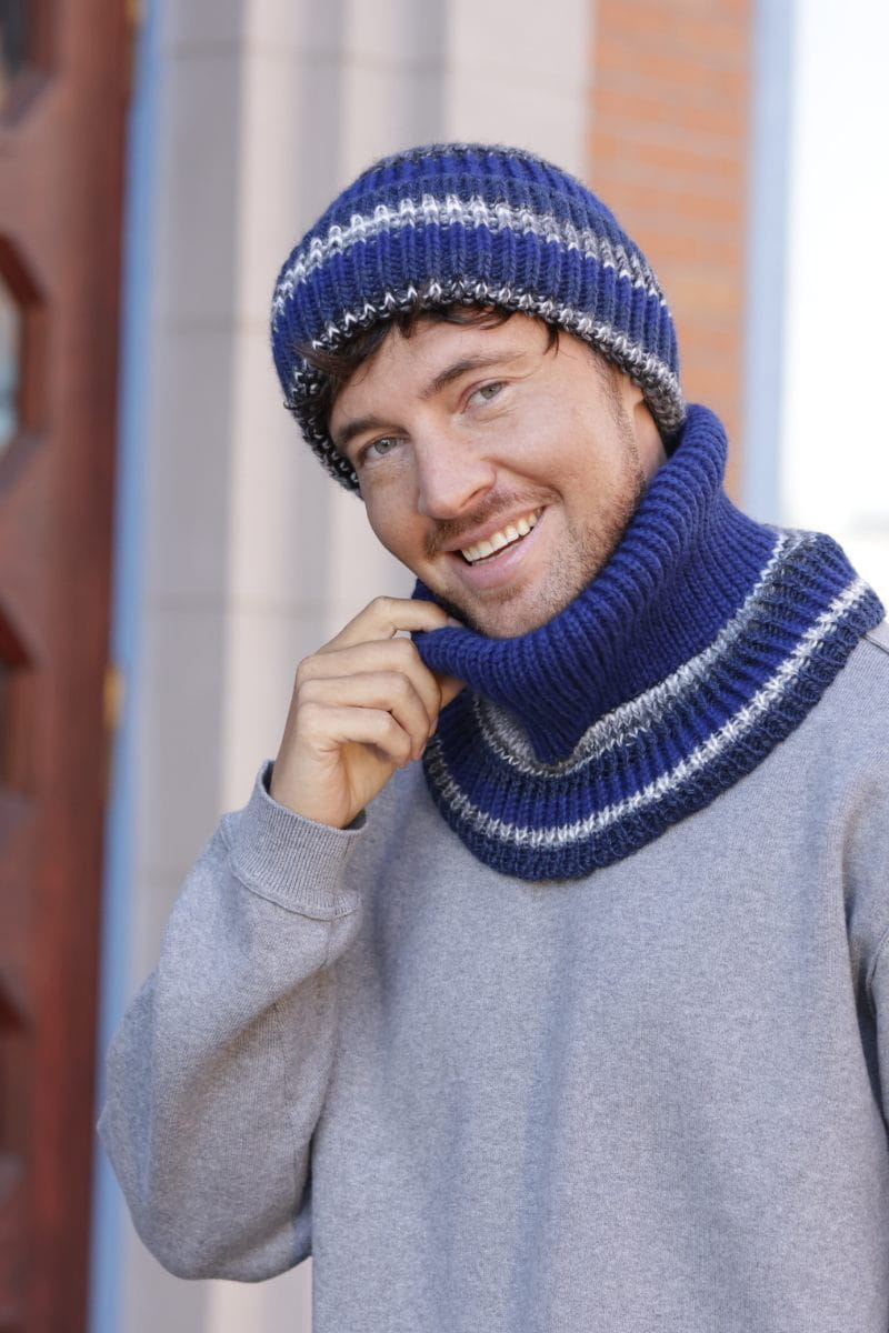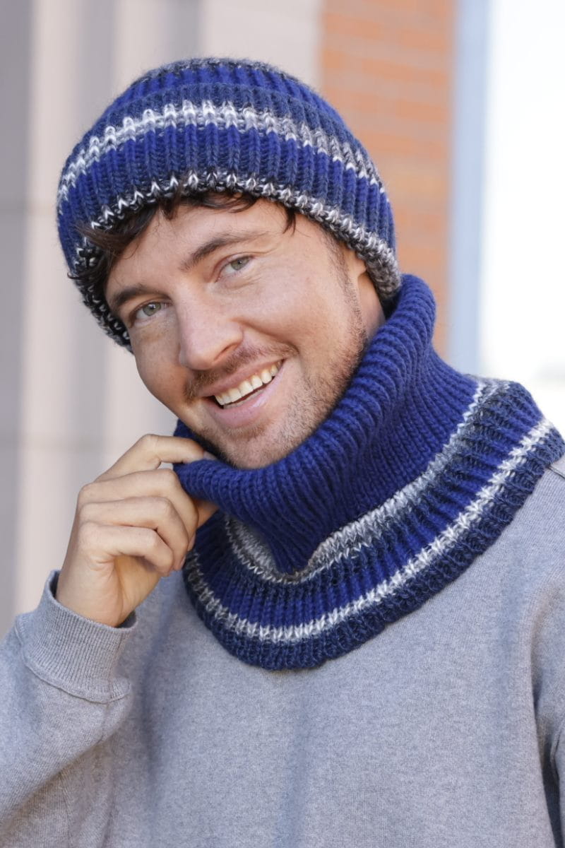Czapka męska granatowa w pasy z wełną i alpaką – ISU