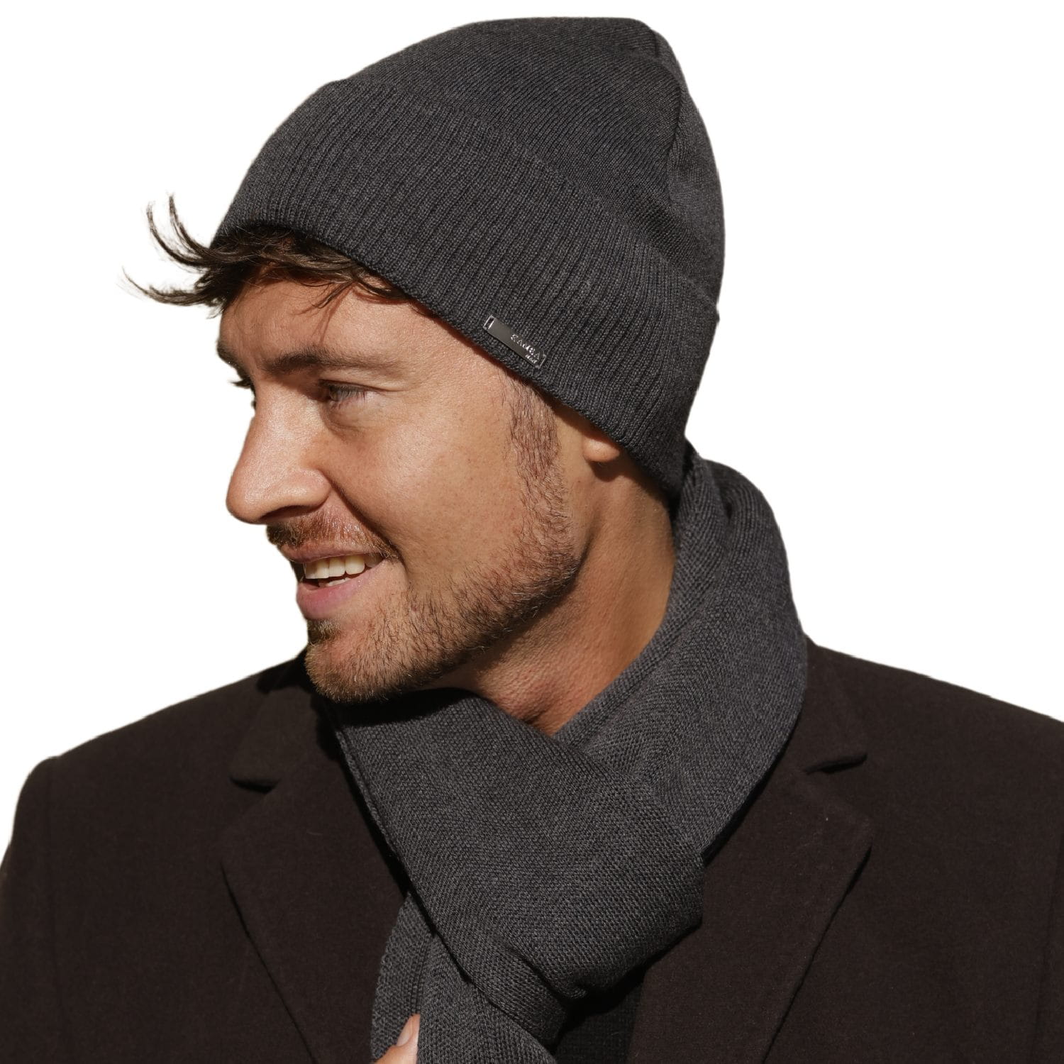 Wygląd i detale. Czysta linia beanie, drobny prążkowany ściągacz i dyskretna metka z logo po boku. Grafit porządkuje styl i łatwo łączy się z płaszczem, parką czy kurtką puchową. Czapka układa się gładko, bez mankietu.