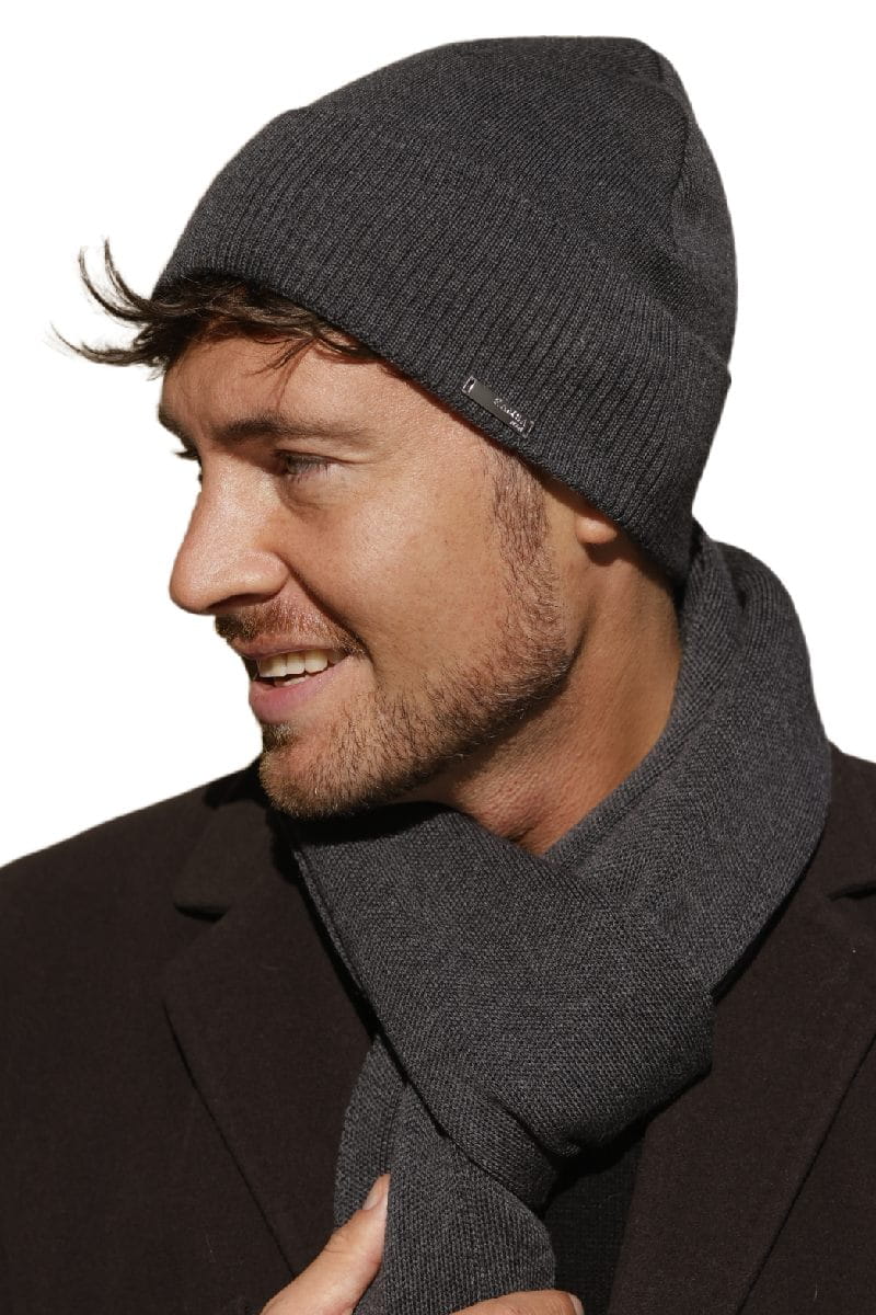 Czapka męska LUCAS — 100% wełna merino, grafit | KAMEA