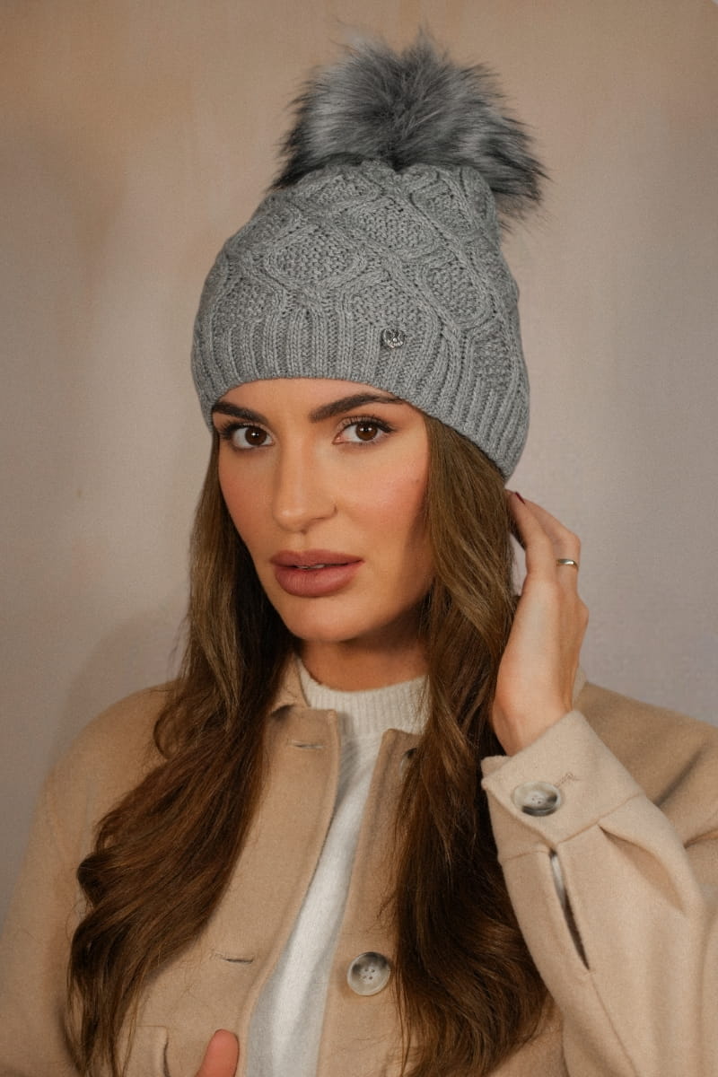 Czapka z ekologicznym pomponem Lamis, kolor szary, Kamea