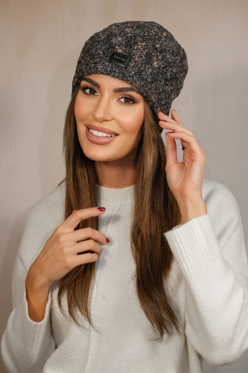 Czapki Damskie Z Ciekawym Wzorem W Kolorze Brązowy Kamea-Dotto