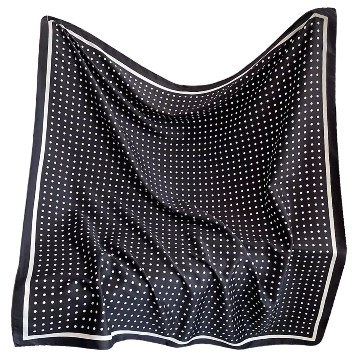 Czarna apaszka w groszki 90x90 – elegancja vintage z nutą paryskiego szyku