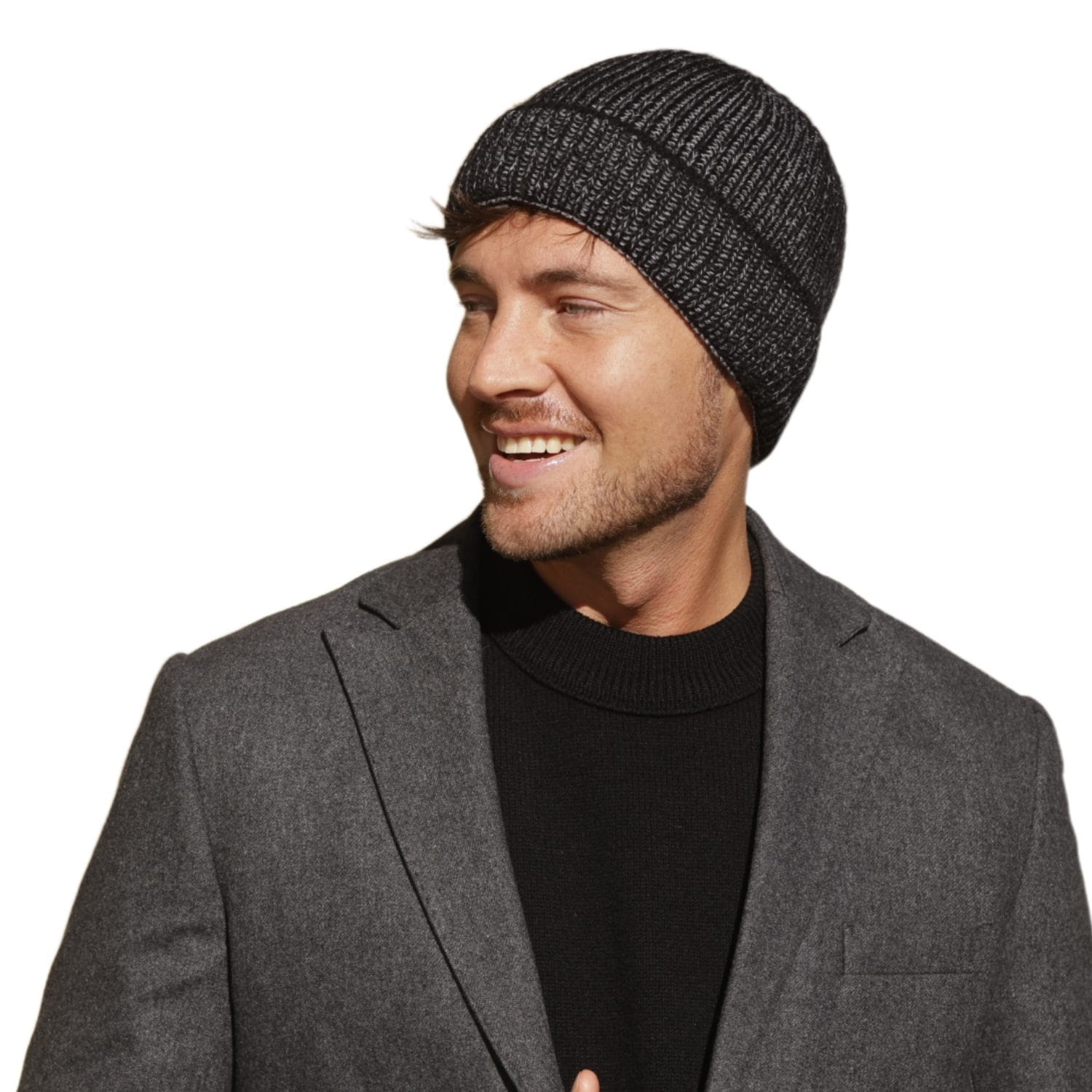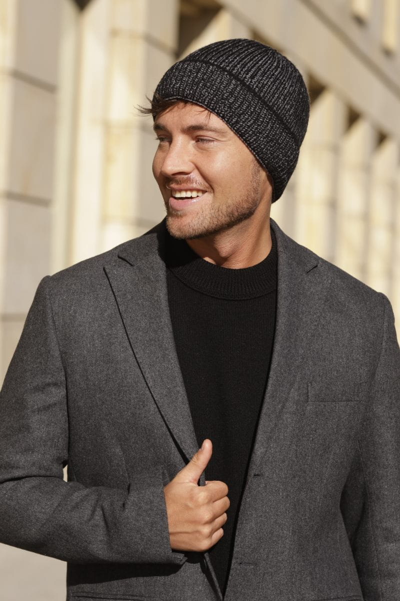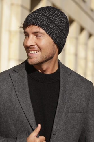 Czapka męska prążkowana z wysokim mankietem – Gabriel, czarna