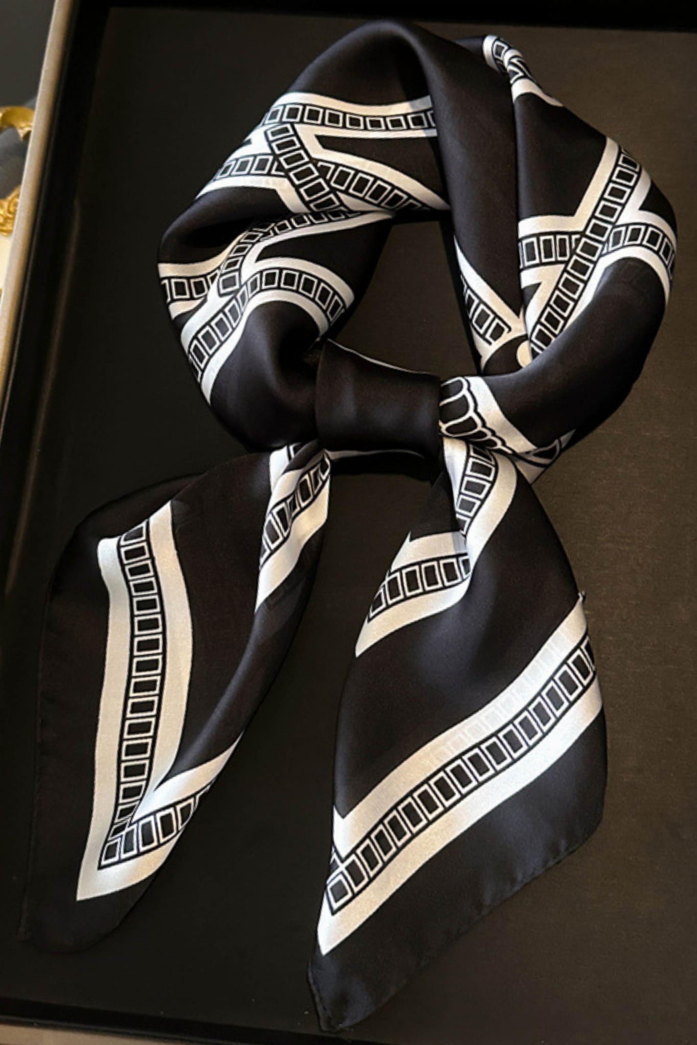 Elegancka apaszka czarno-biała – geometryczna precyzja i klasyka w jednym