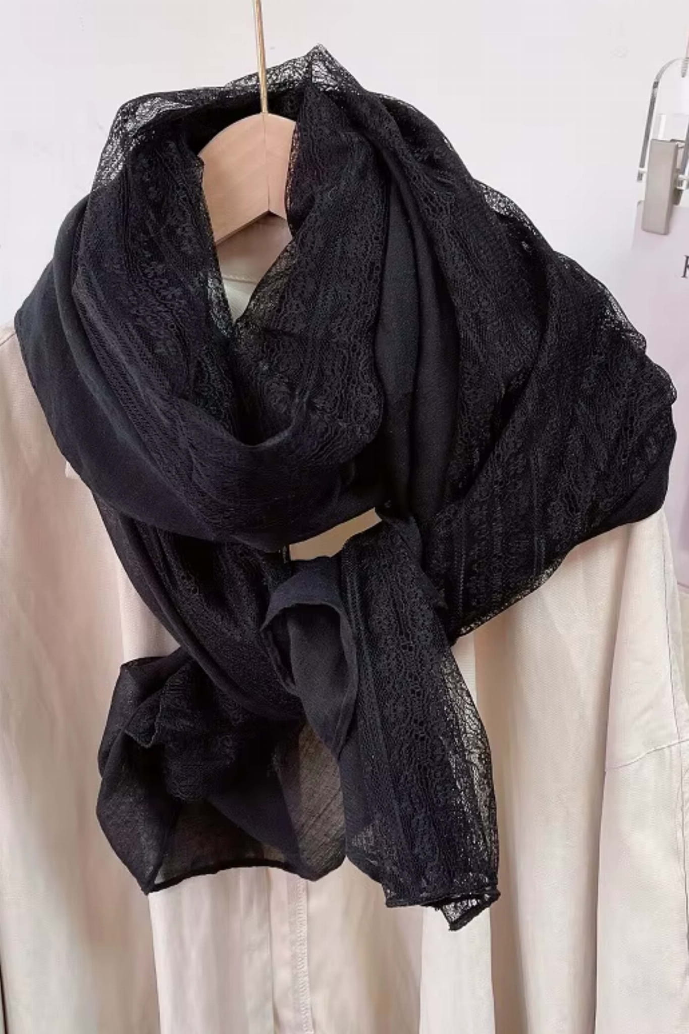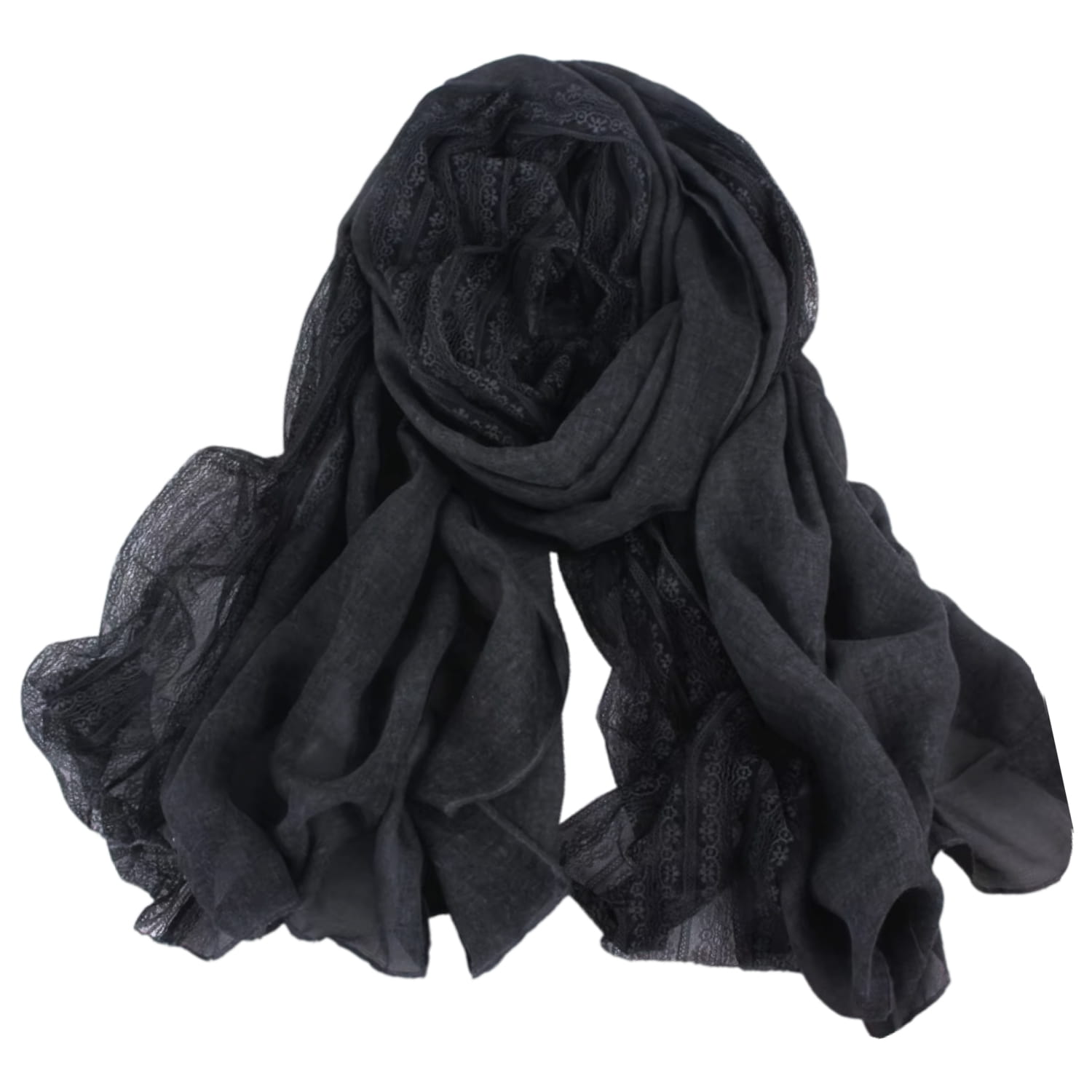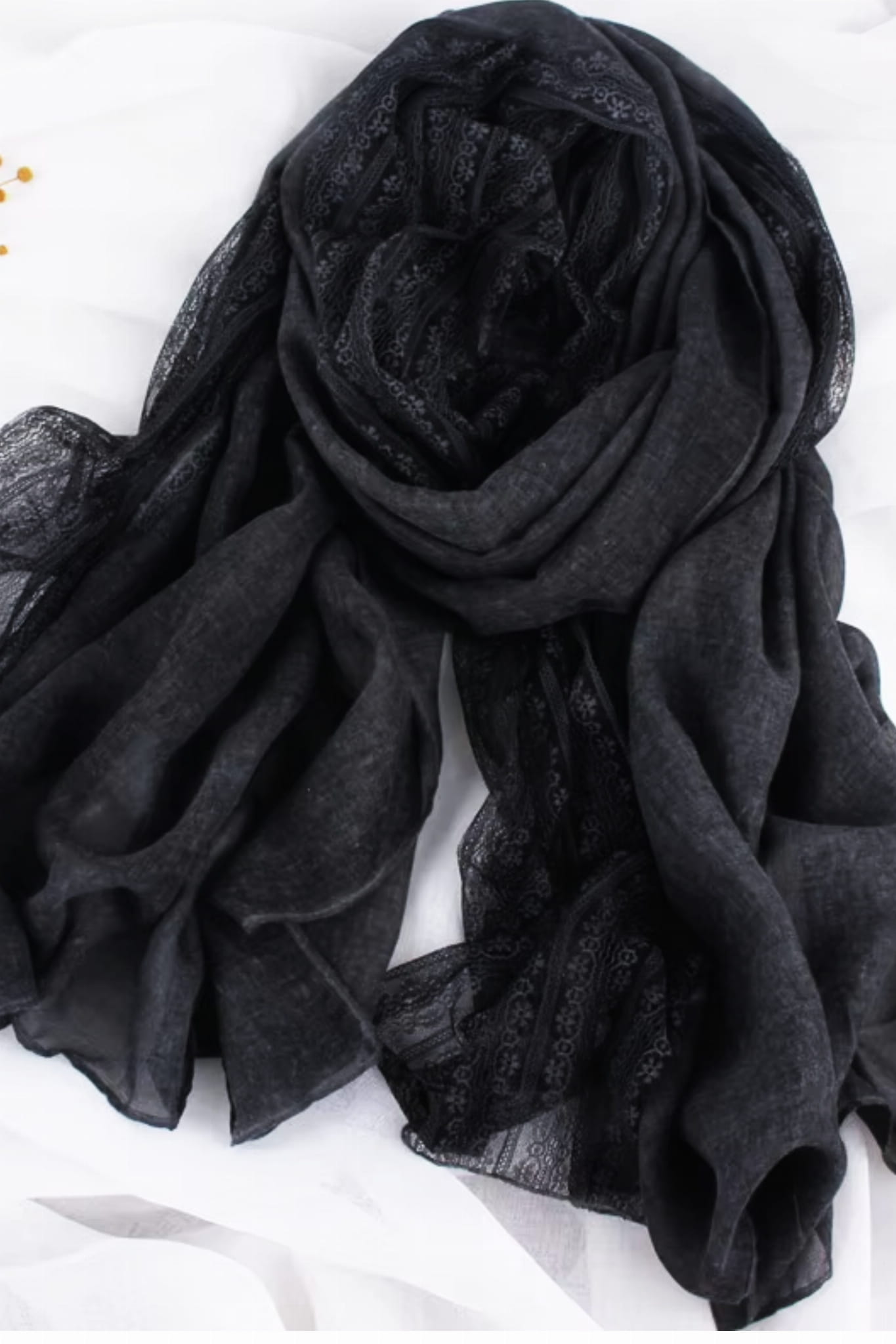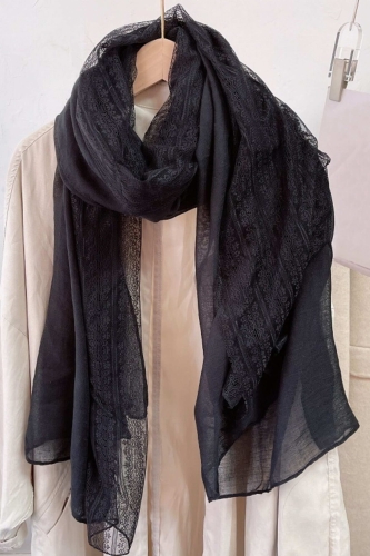 Czarny szal z dekoracyjną koronką – ponadczasowa elegancja