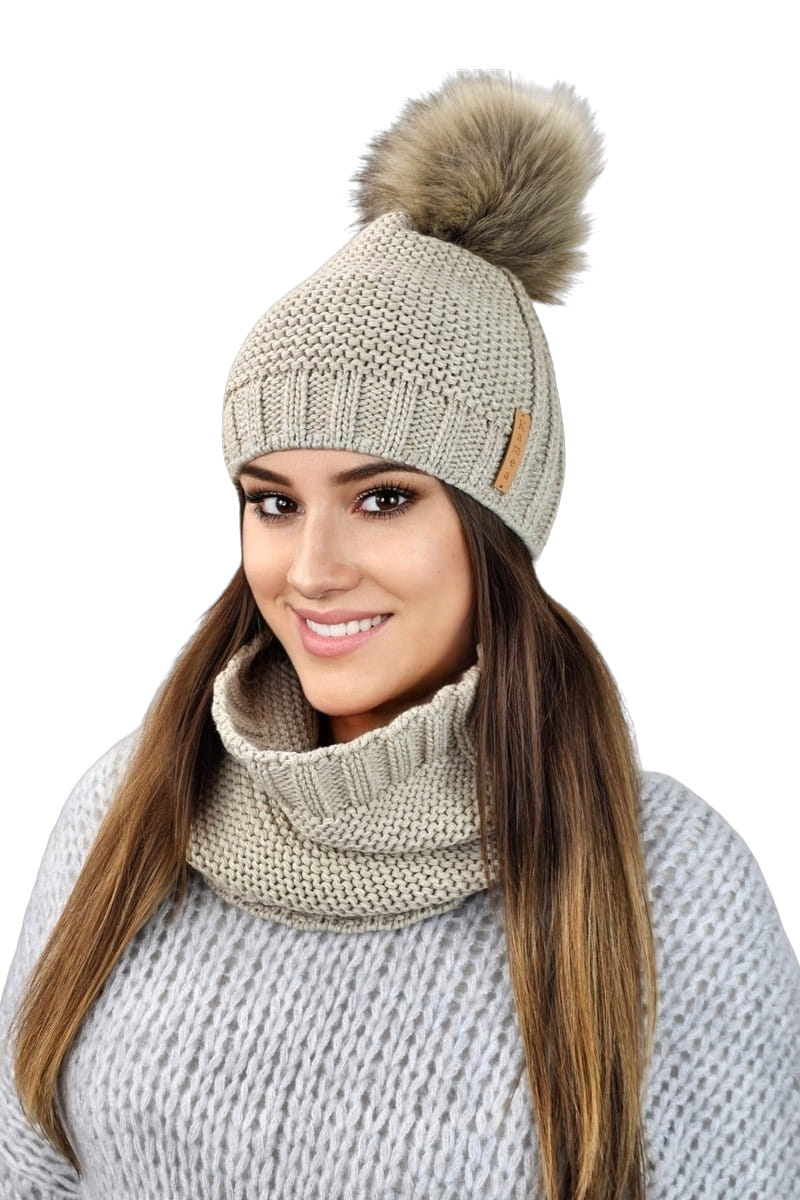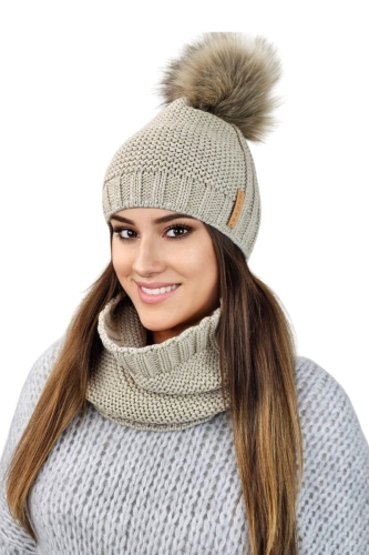 FIONA komplet zimowy czapka z kominem kolor beżowy