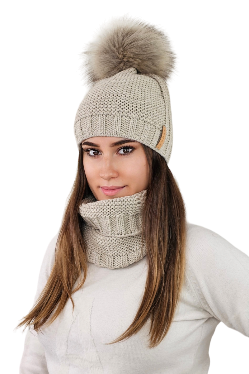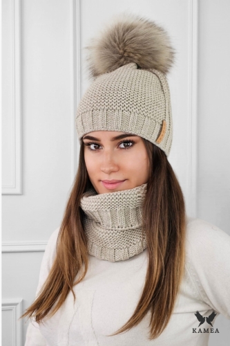FIONA komplet zimowy czapka z kominem kolor cappucino