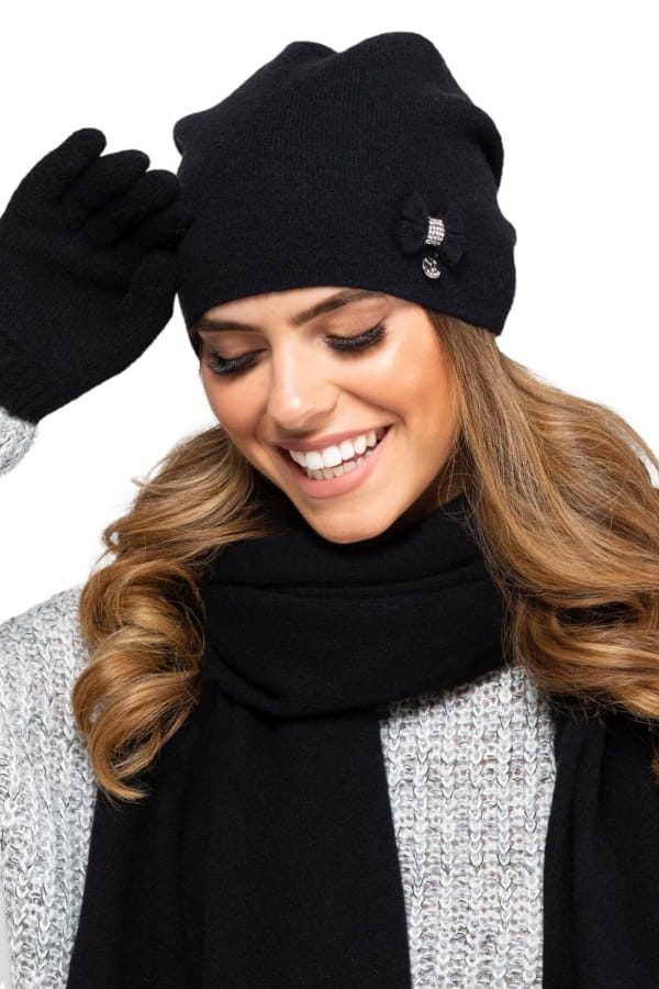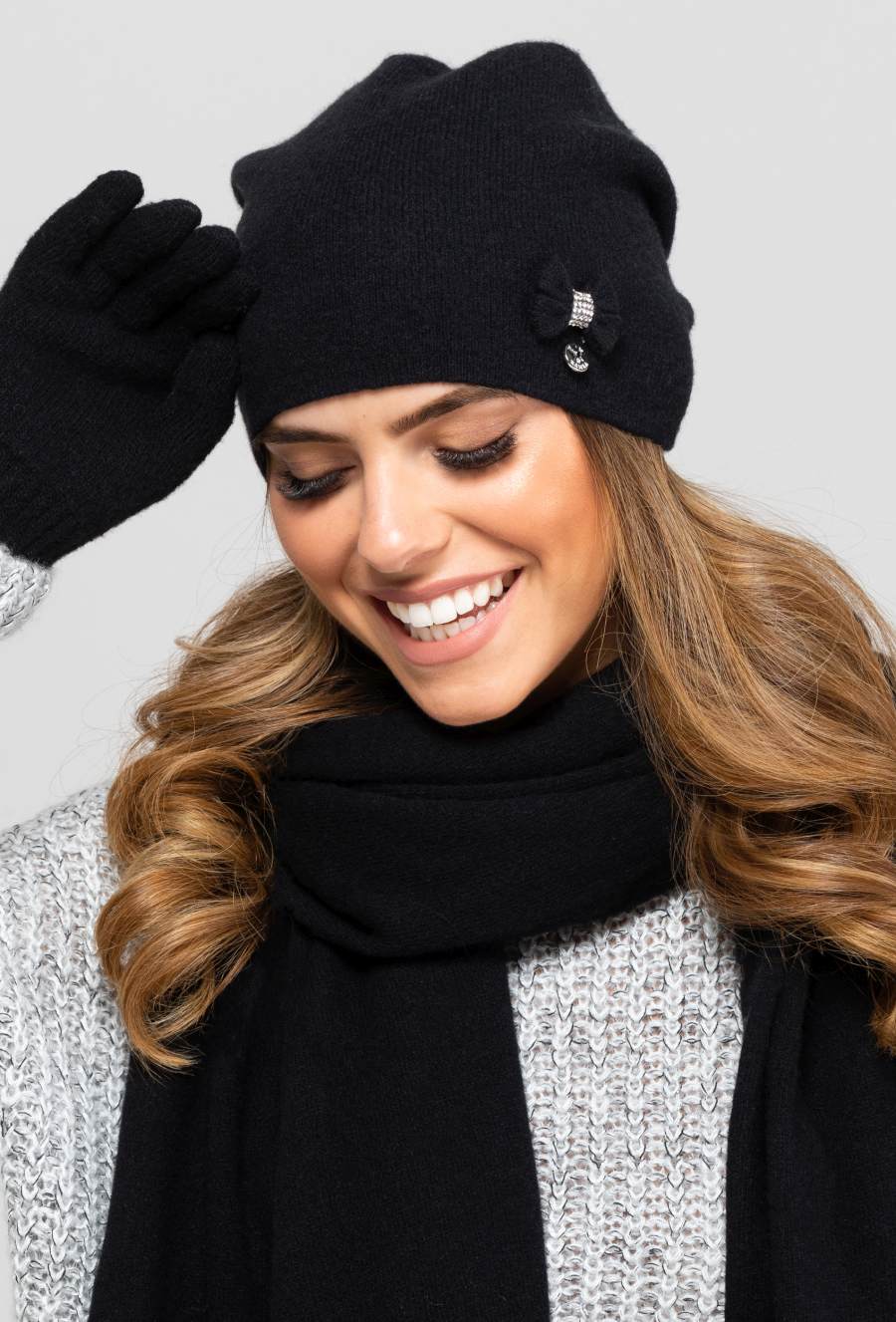 FLORYDA czapka damska pojedyncza z ozdobną kokardką kolor czarny