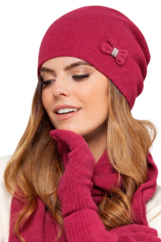 FLORYDA czapka damska pojedyncza z ozdobną kokardką kolor malinowy