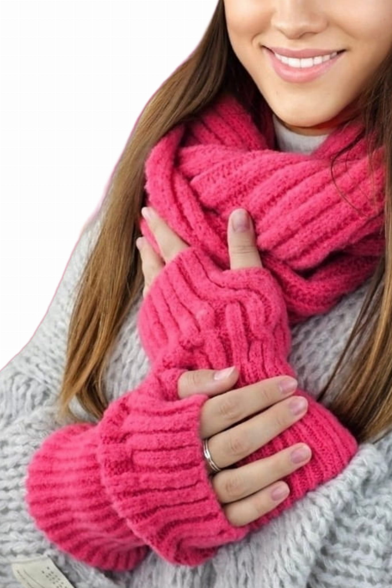 GIZMA dzianinowe ocieplacze na ręce, rękawiczki bez palców, mitenki kolor fuksja