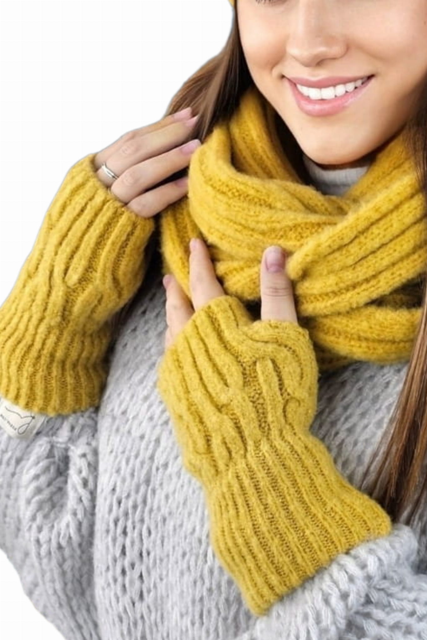 GIZMA dzianinowe ocieplacze na ręce, rękawiczki bez palców, mitenki kolor szary