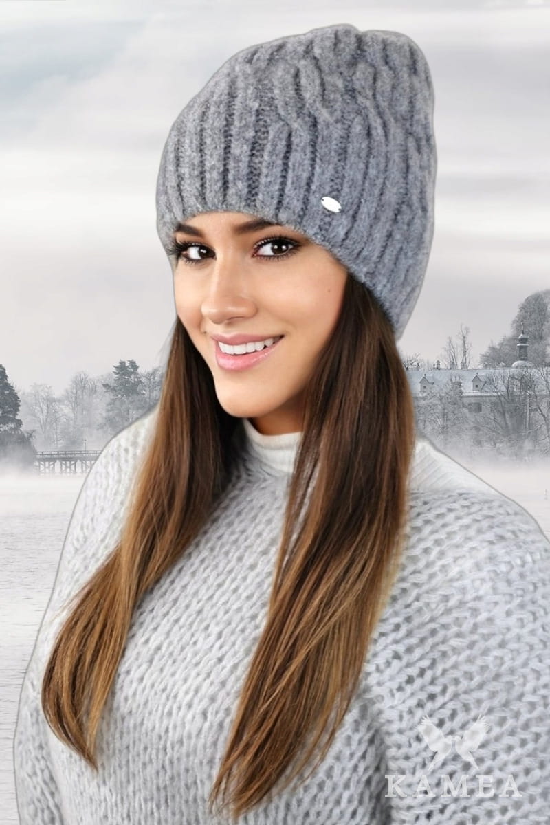 Niezwykle ciepła, miękka i przyjemna w dotyku czapka, zdobiona przykuwającym wzrok splotem. Wykonana z wysokiej jakości przędzy z dodatkiem wełny.