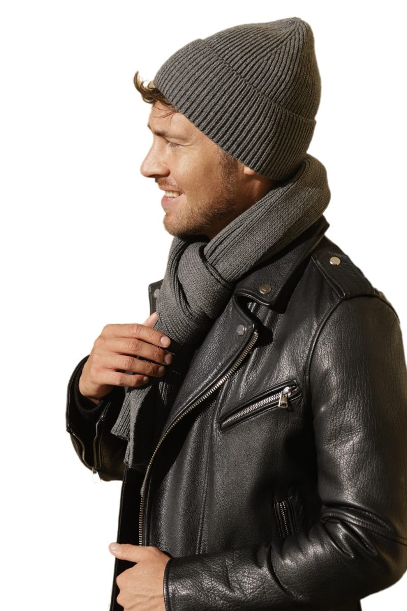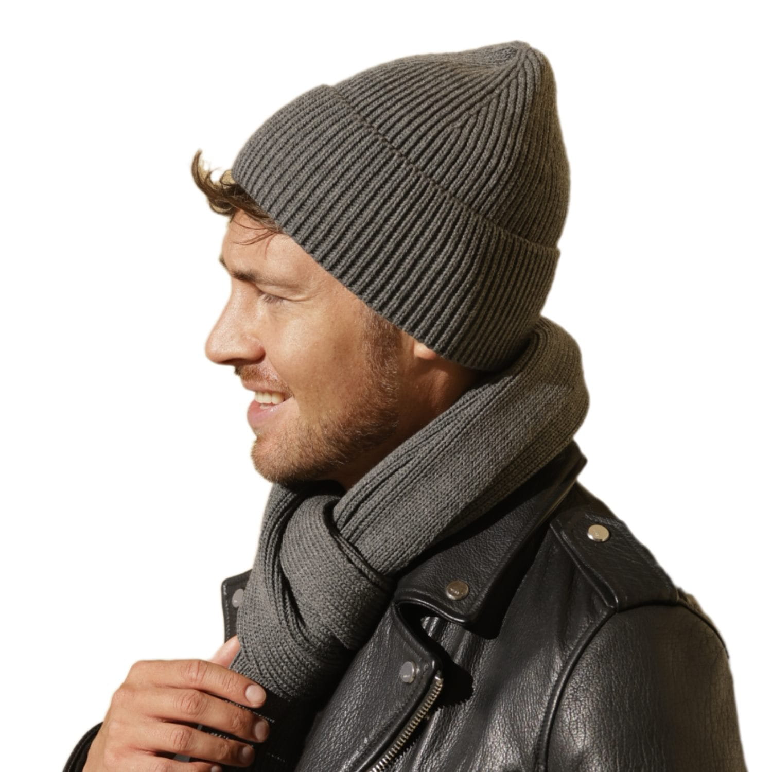 Czapka męska prążkowana z mankietem – Filip, grafit