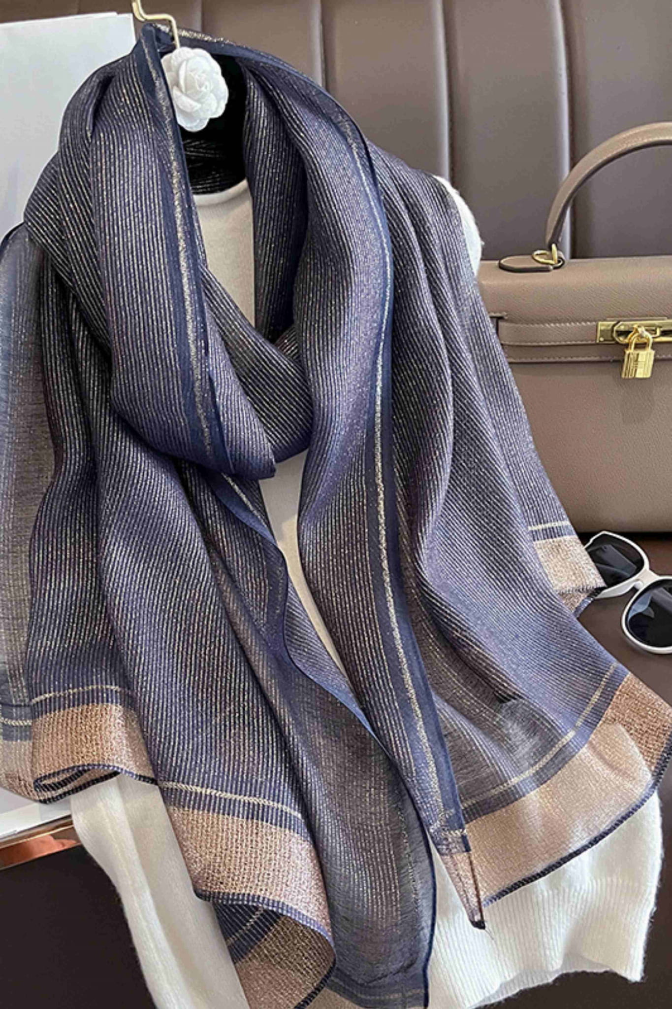 Granatowy szal z eleganckim połyskiem