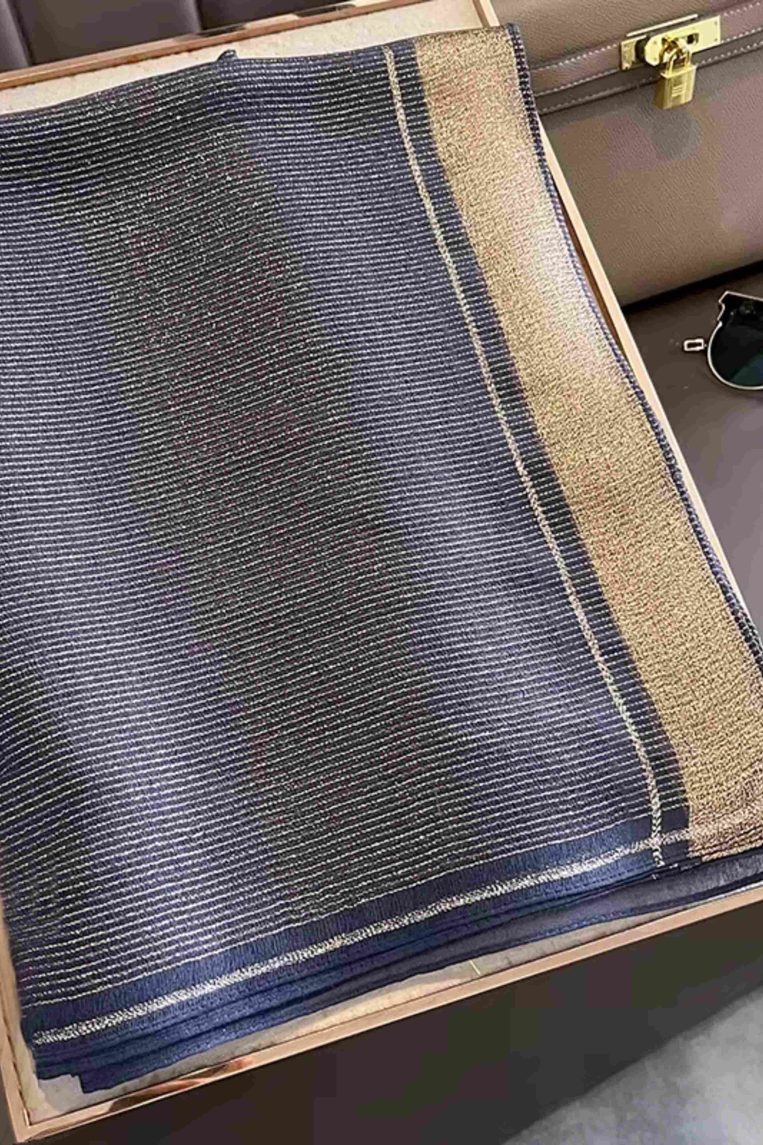 Granatowy szal z połyskiem – jedwab i poliester, 180x90 cm