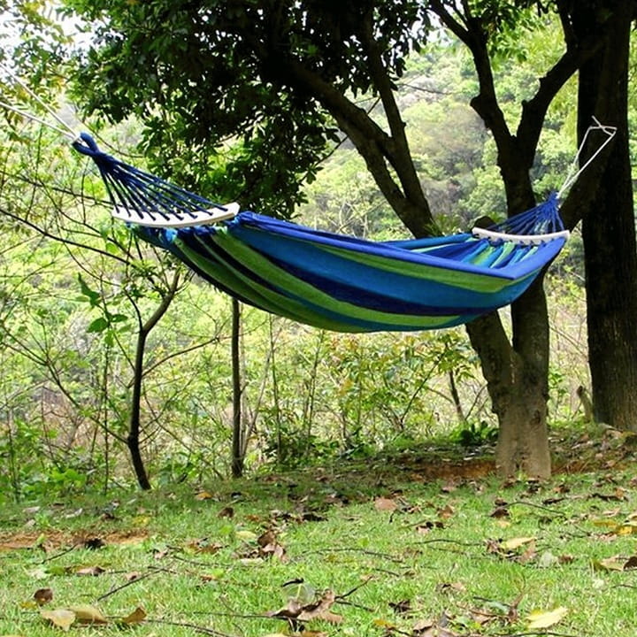 ➡️ Aby podłączyć się odpoczynkiem na łonie natury, wystarczy podłączyć hamak do dwóch drzew lub do dwóch przekaźników słupków lub innych konstrukcji.
