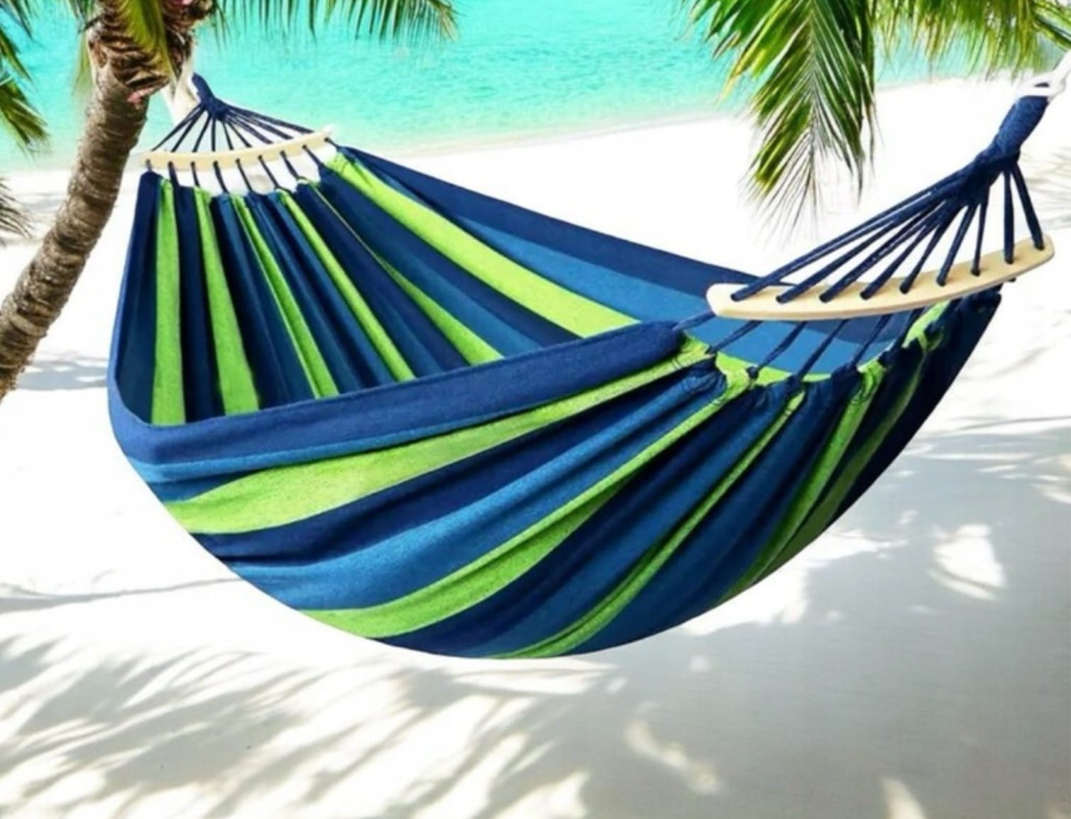➡️ Drewniane poprzeczki stabilizujące , szeroki kształt hamaka, funkcja na swobodnym ułożeniu ciała i zapewniający komfortowy relaks.