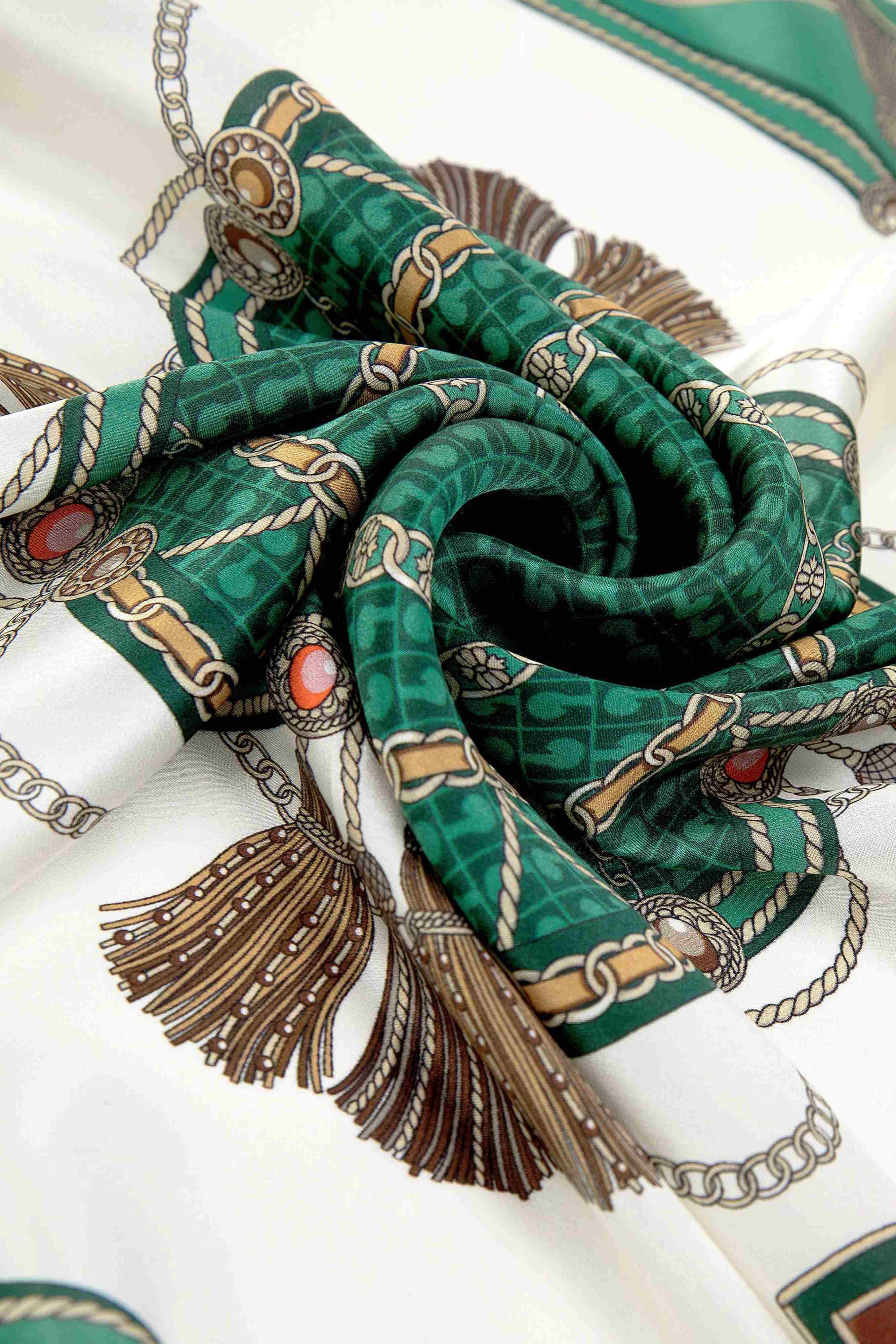 Jedwabna apaszka 70x70 w stylu królewskim – Zielona Kareta