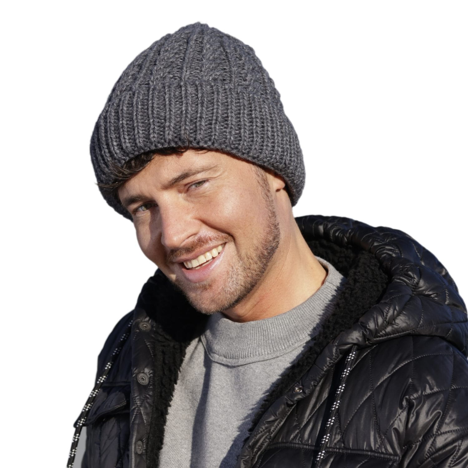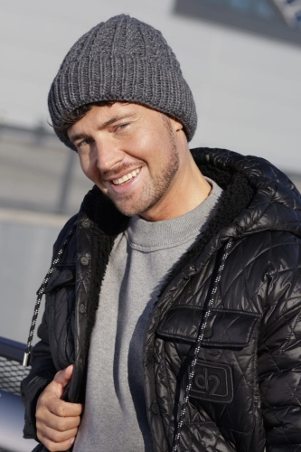 Czapka męska prążkowana z mankietem – John, grafit