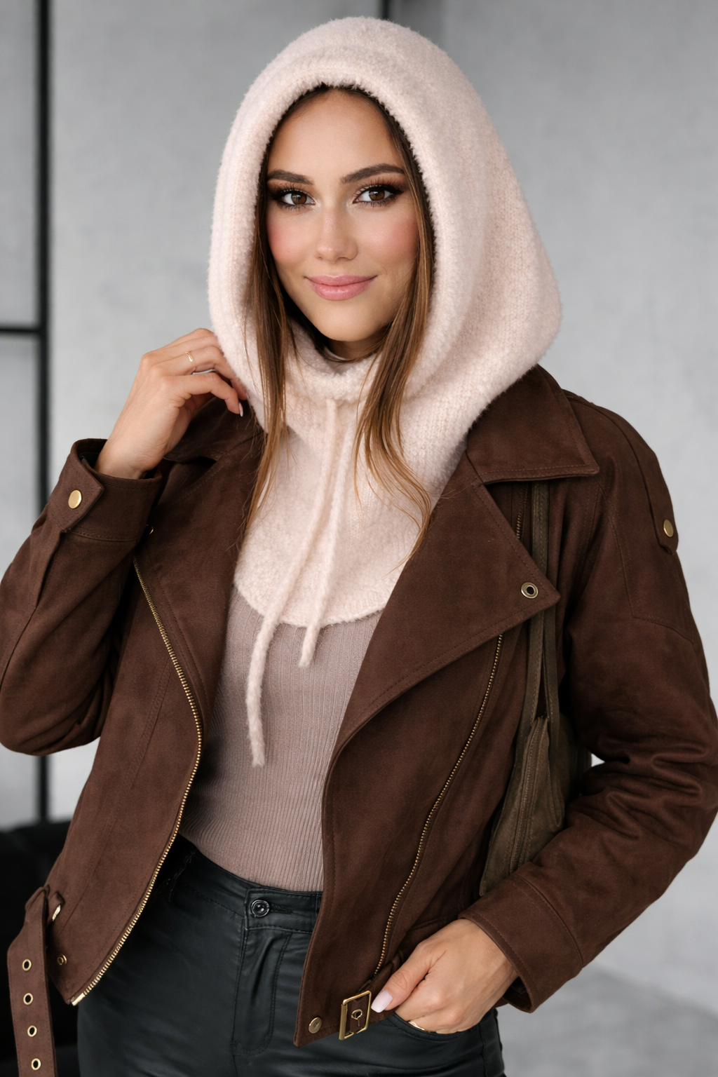 KAPTUR-BLANKA modny zimowy ciepły kolor beżowy