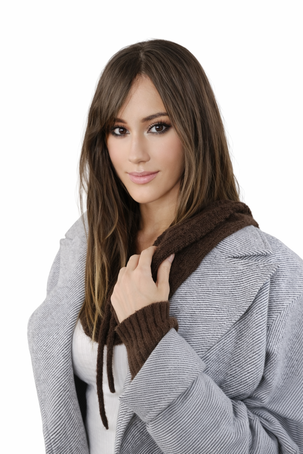 Hit nadchodzącego sezonu jesień-zima. Niezwykle efektowny i oryginalny pomysł który ożywi każdą stylizację, kaptur po ściągnięciu z głowy służy jako sam komin.